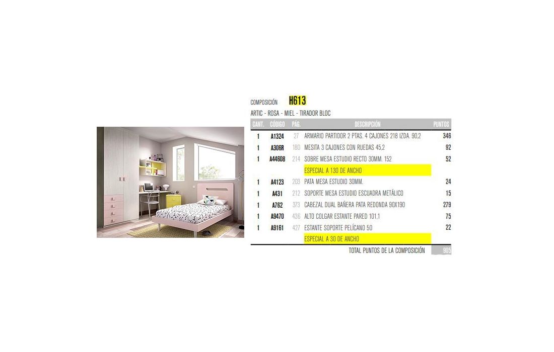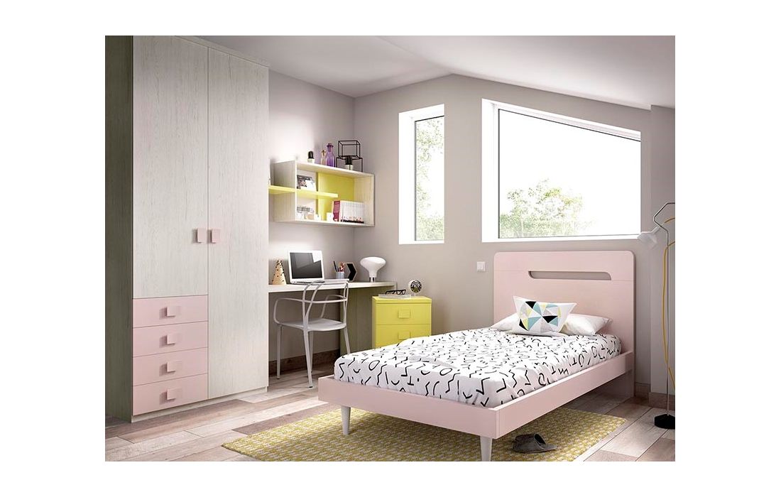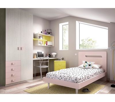 Cama, Secratária, Roupeiro, Módulos de Parede, Mesa de Cabeceira c/ Rodas