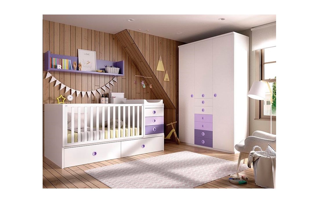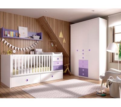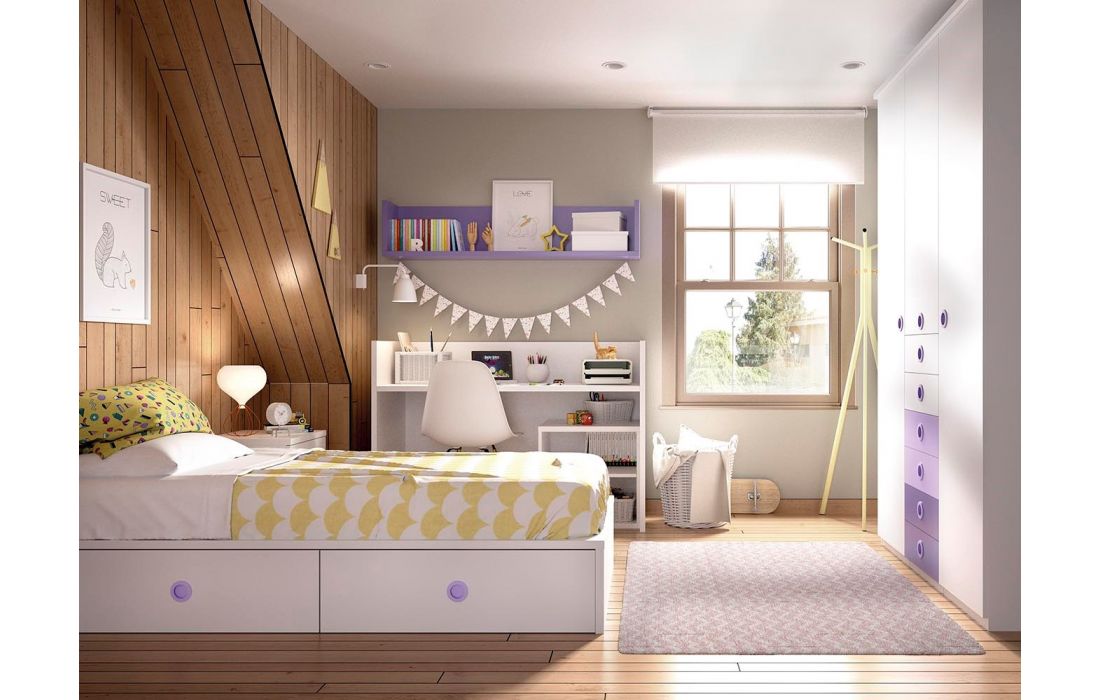 Cama de Criança, Secretária, Roupeiro, Módulos de Parede