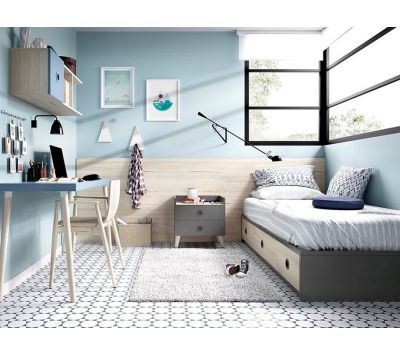 Cama c/ 3 gavetas, Secretária, Módulos de Parede, Mesa de Cabeceira
