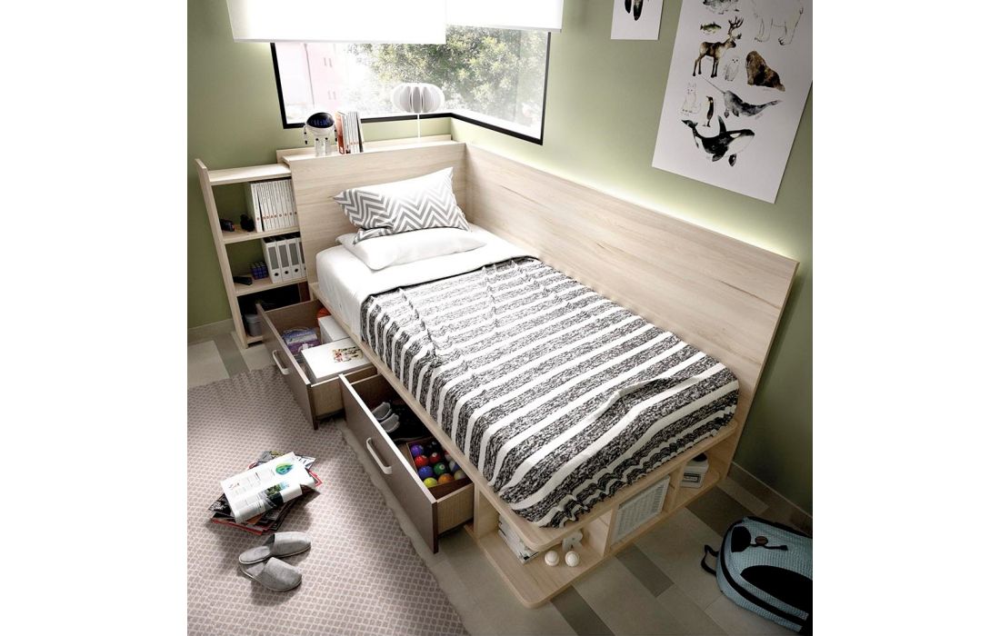 Cama c/ 2 gavetas, Secretária, Estante, Mesa de Cabeceira c/ Rodas, Módulos de Parede