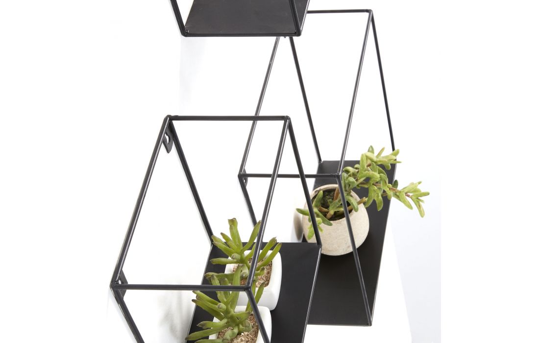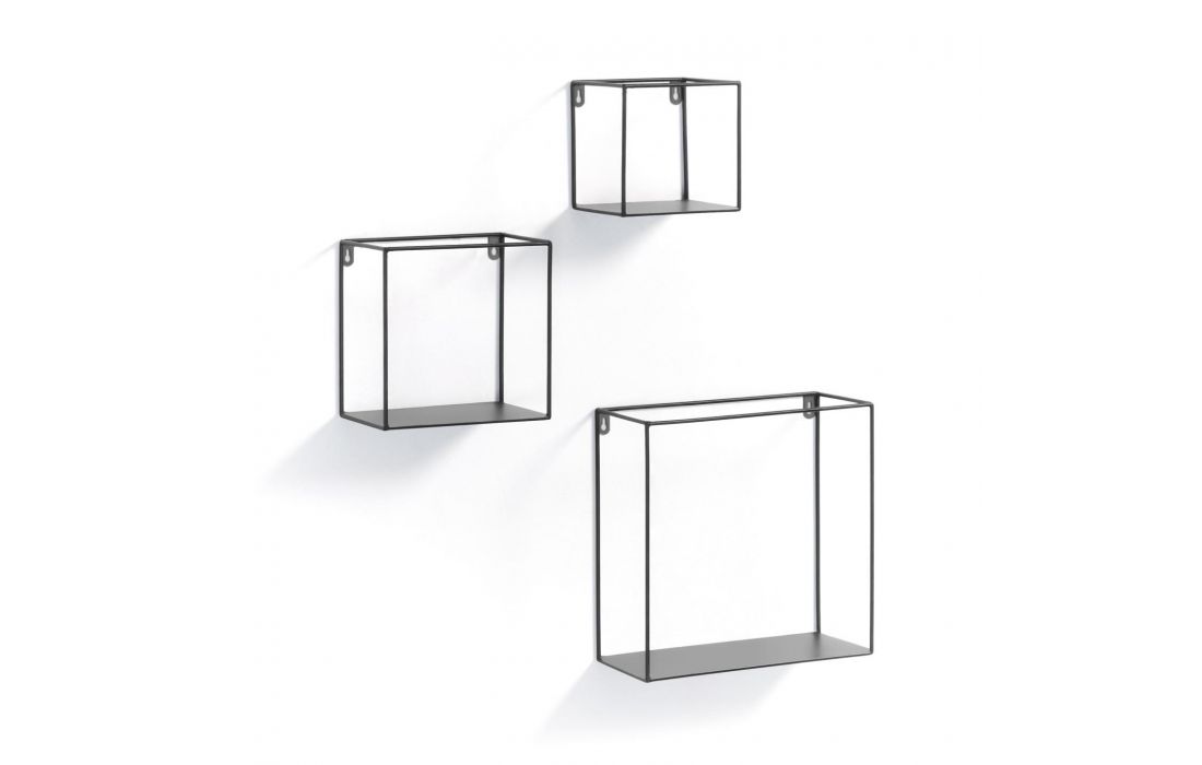Conjunto de 3 estantes de parede quadradas em aço preto