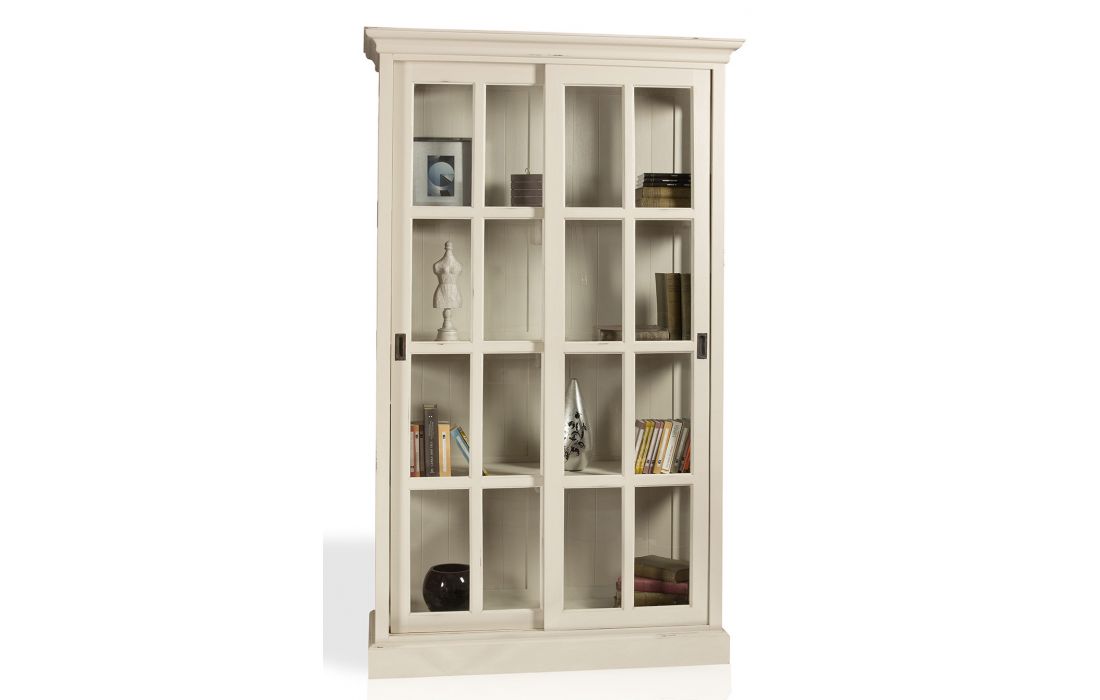 Móvel alto clássico, estrutura em madeira com 2 portas com vidro.
