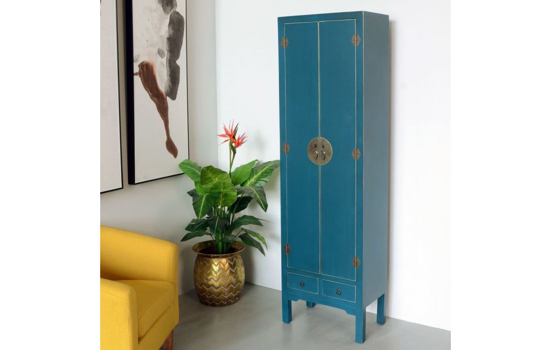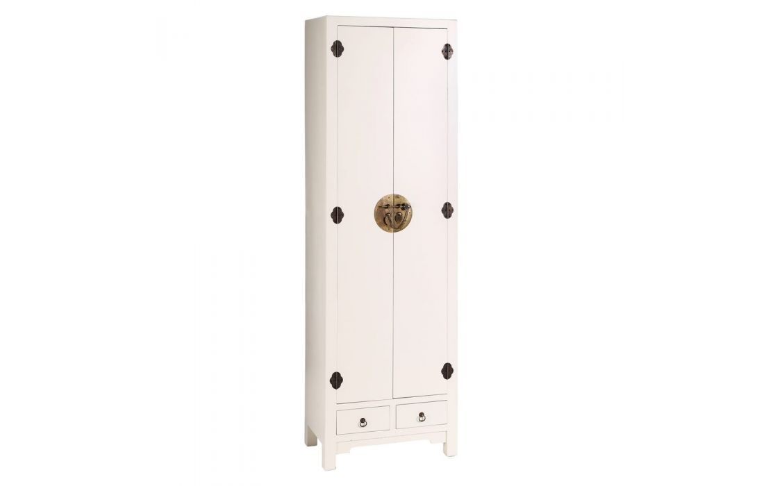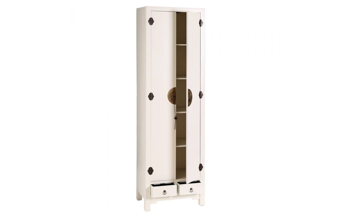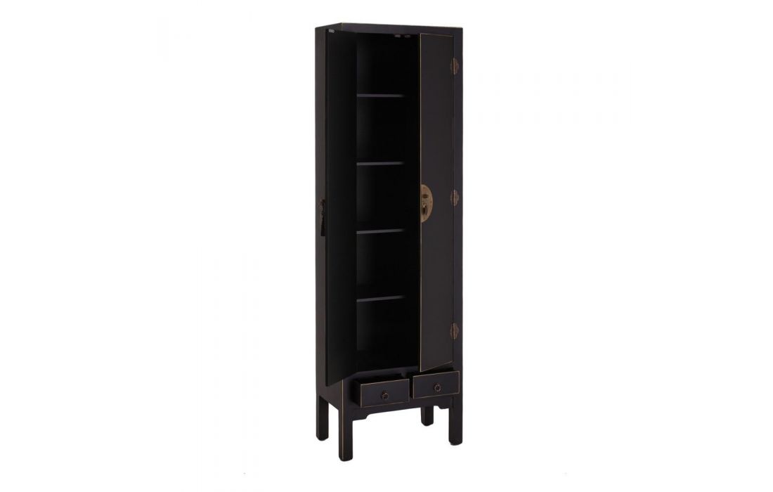 Móvel Alto em MDF c/ 2 portas e 2 gavetas e puxadores em metal dourado disponível em 4 cores, preto, branco, vermelho e azul.
