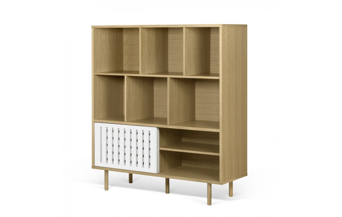 Móvel alto com 2 portas de correr 1 prateleira dentro de cada compartimento, a parte de cima é composta por inúmeras prateleiras, de forma a maximizar o aproveitamento do espaço de parede disponível.