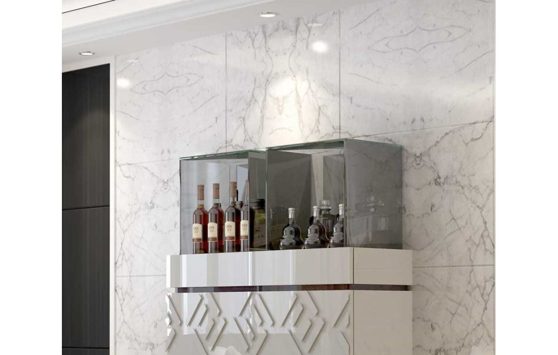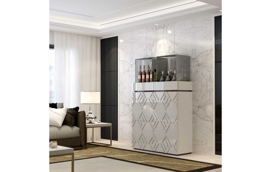 móvel bar de 4 portas e 1 gaveta com pormenor em vidro