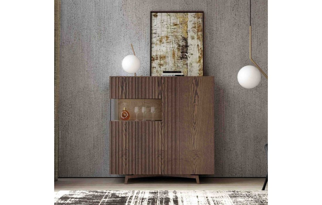 Móvel alto em estrutura mdf e folha de madeira composto por 3 Portas e 1 gaveta interior c/ abertura "Tic-Tac".