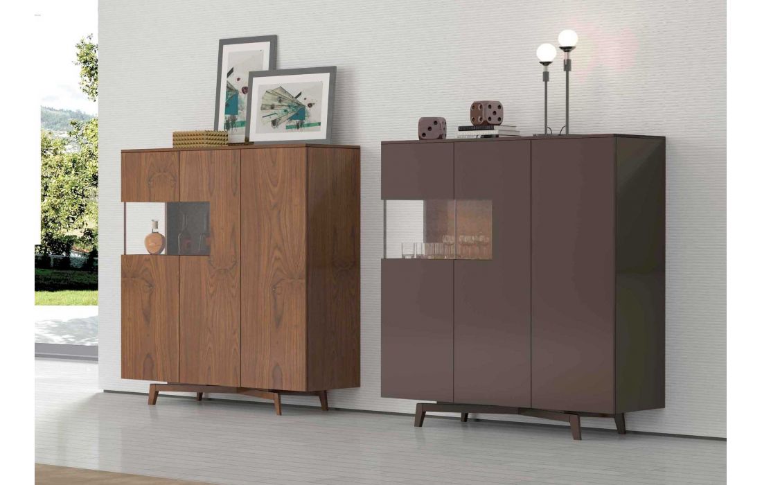 Móvel alto em estrutura mdf e folha de madeira composto por 3 Portas e 1 gaveta interior c/ abertura "Tic-Tac".