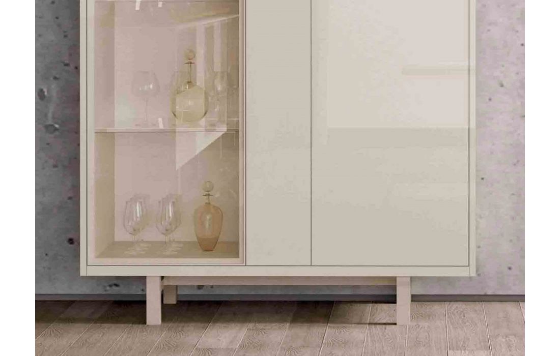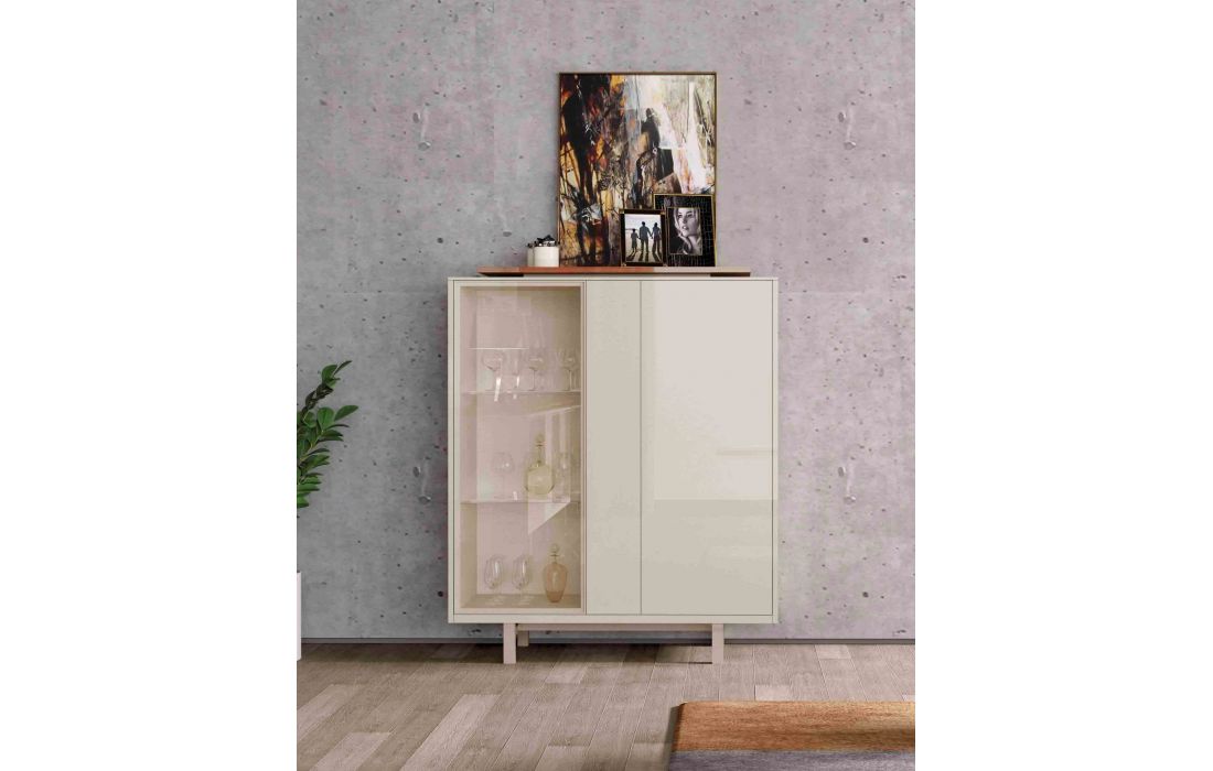 Móvel alto em estrutura mdf e folha de madeira composto por 3 Portas e 2 gaveta interior em "Tic-Tac".
