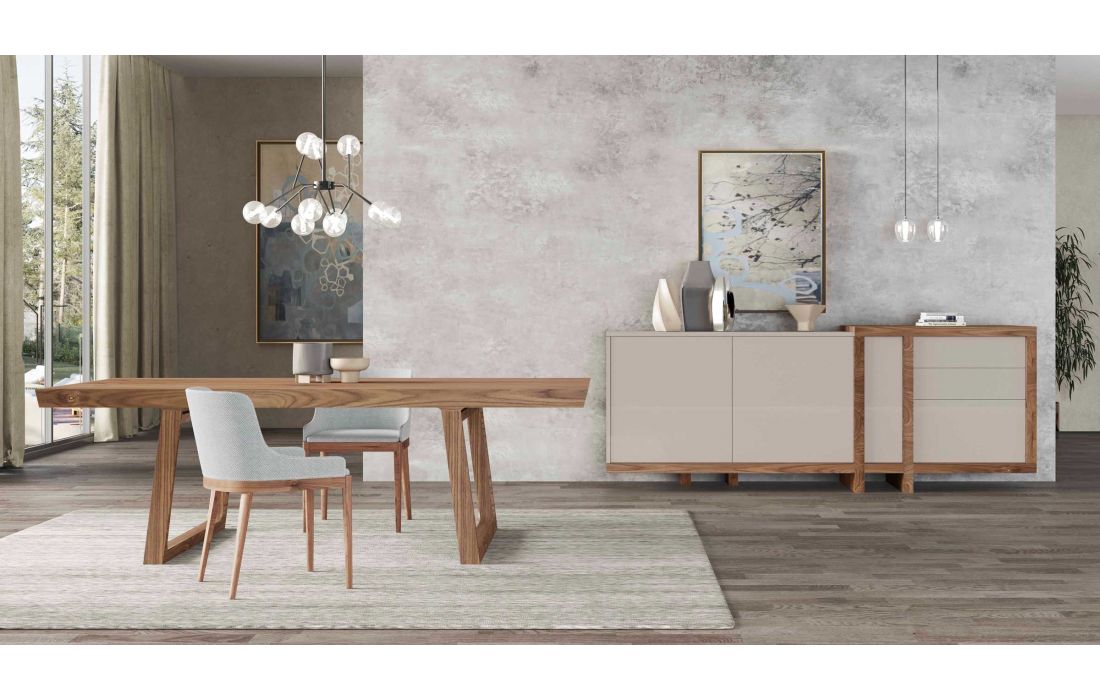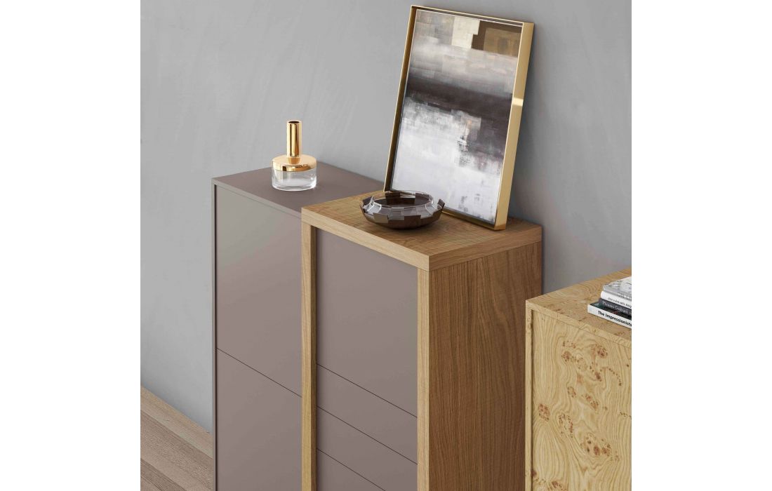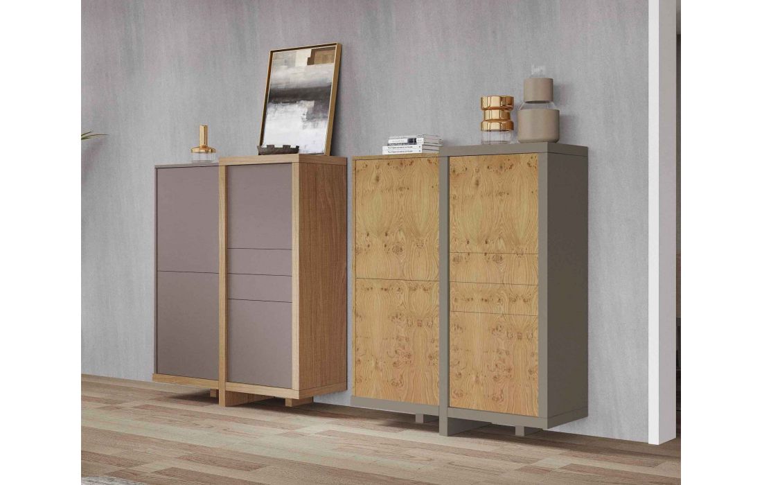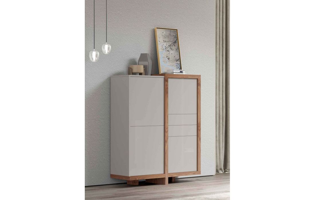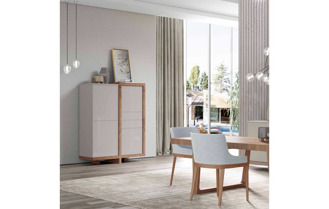 Móvel alto em estrutura mdf e folha de madeira composto 4 Portas e 2 Gaveta interior "Tic-Tac".