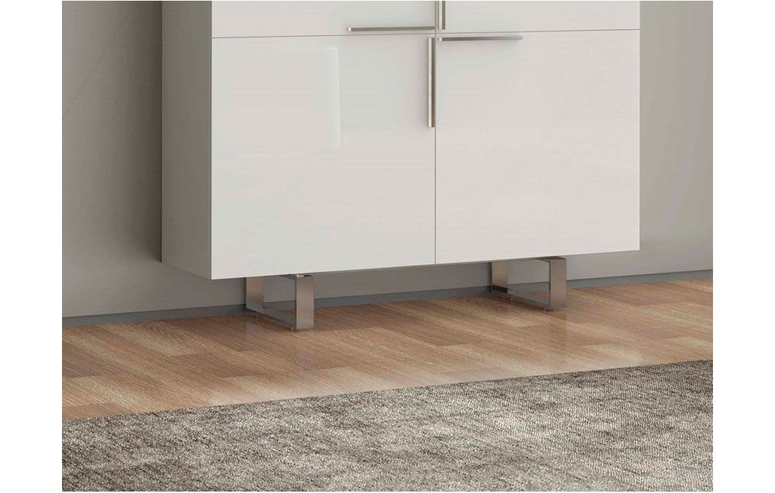 Móvel alto em estrutura mdf e folha de madeira composto 4 Portas e 1 Gaveta c/ pés em inox.
