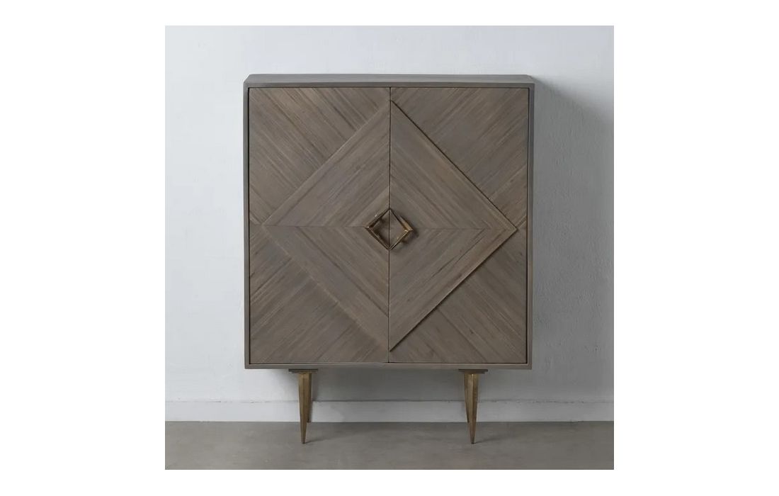 Móvel bar de madeira na cor cinza com puxador em metal