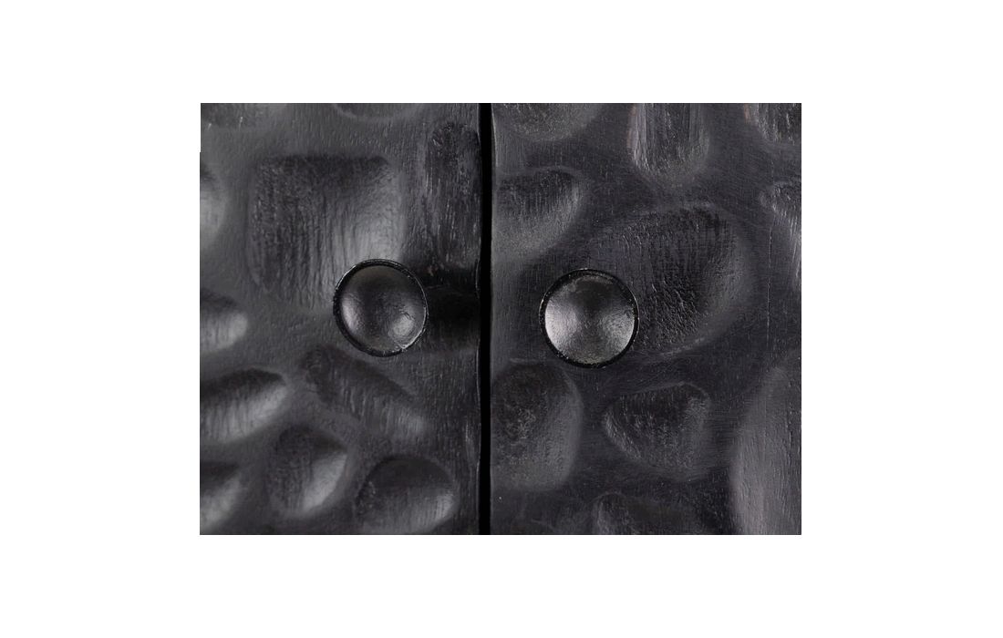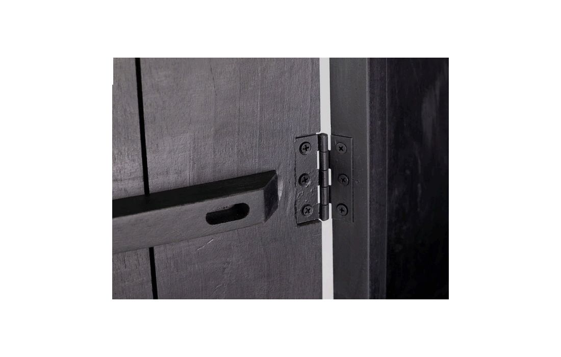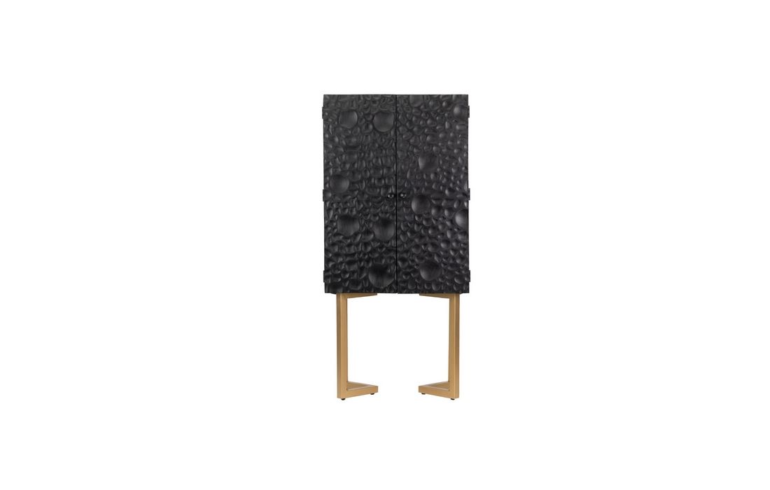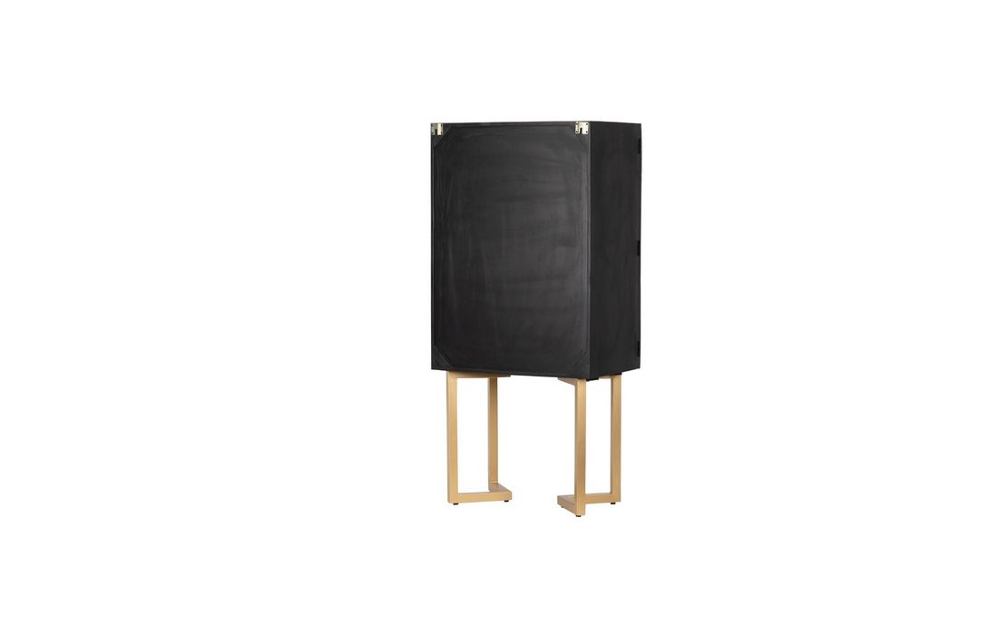 Móvel alto com 2 portas em madeira de mangueira preto , pés em aço inóxidavel dourado