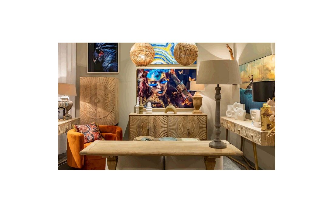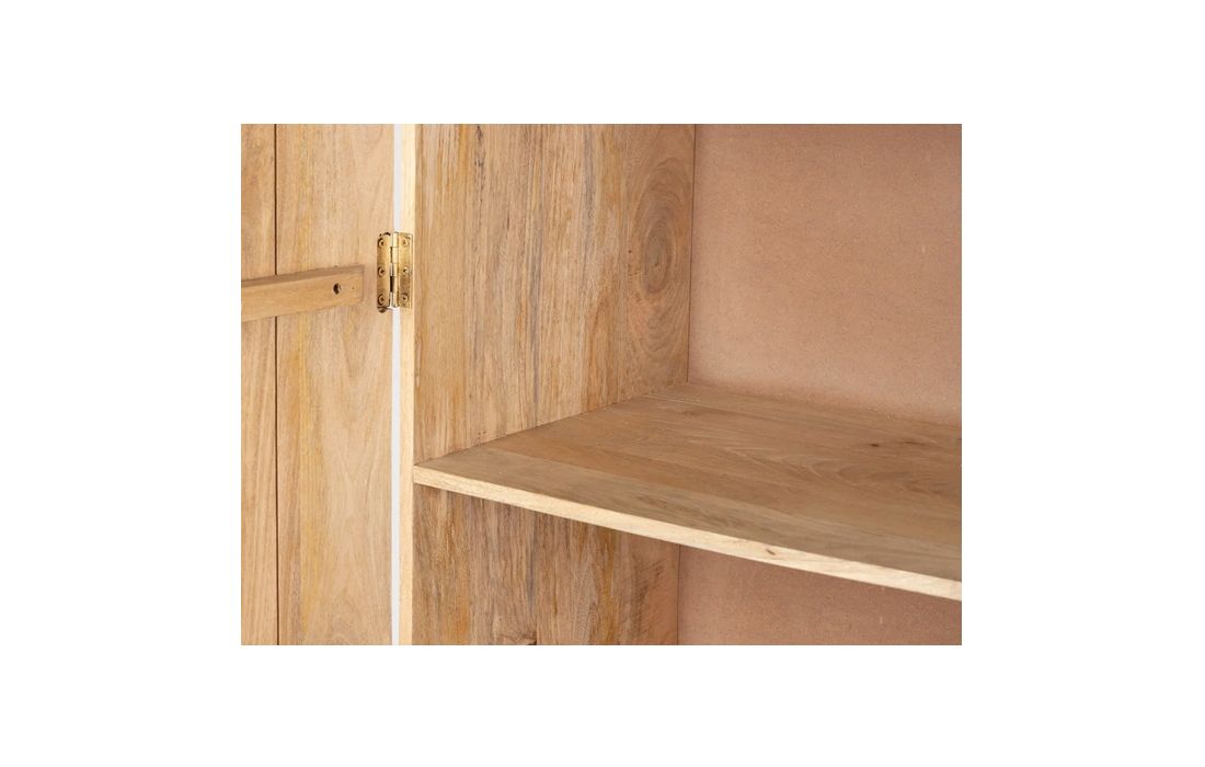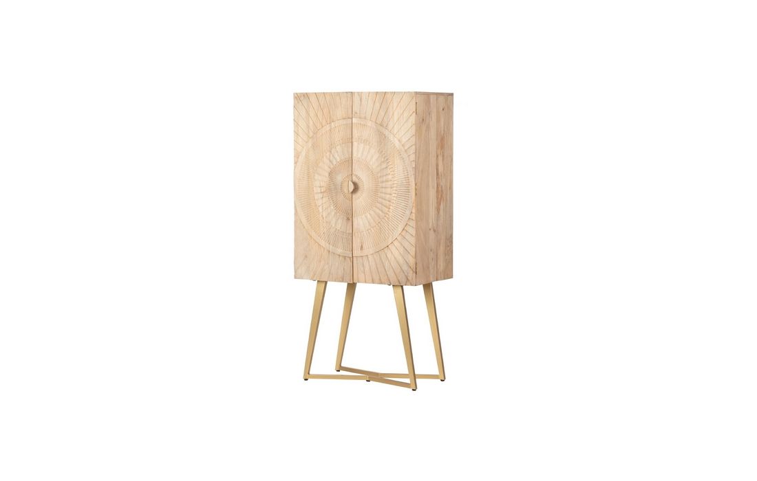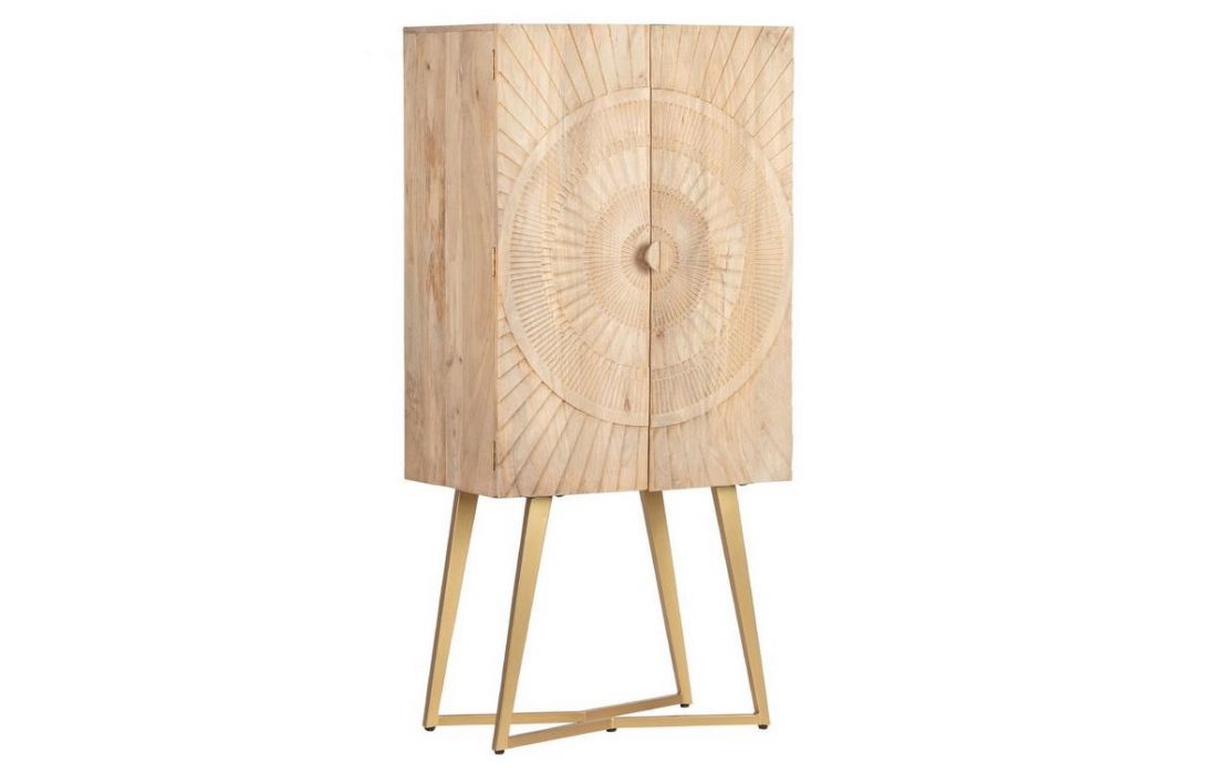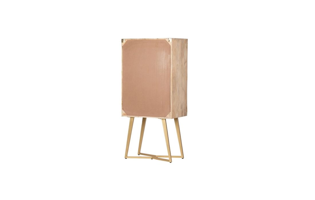 Móvel alto com 2 portas em madeira de mangueira , pés em metal dourado