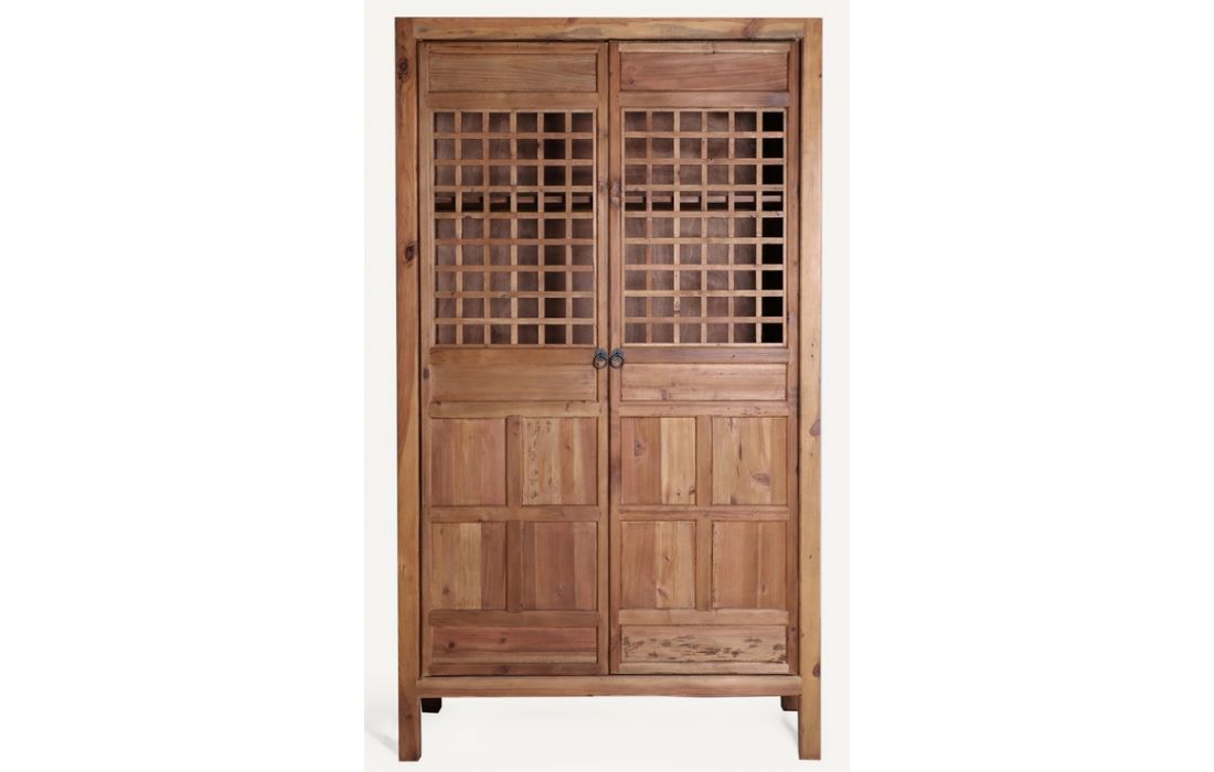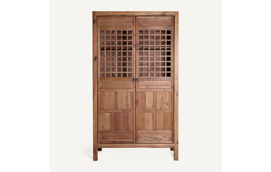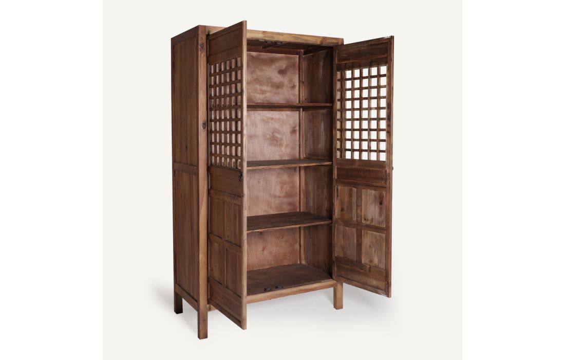 Móvel alto com 2 portas e 3 prateleiras , fabricado em madeira de Olmo na cor natural.