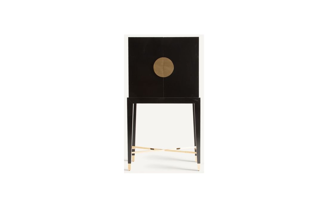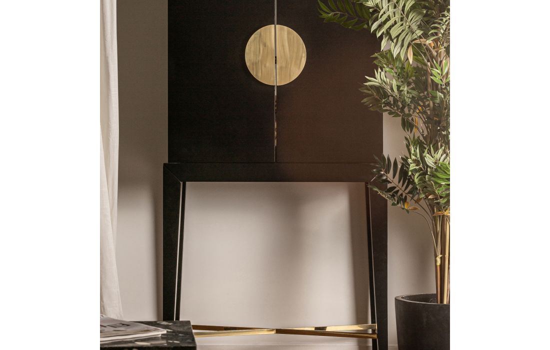 Móvel Alto Leliwa na cor preto e dourado , com estilo moderno fabricado em madeira dm combinado com metal , com prateleiras em vidro