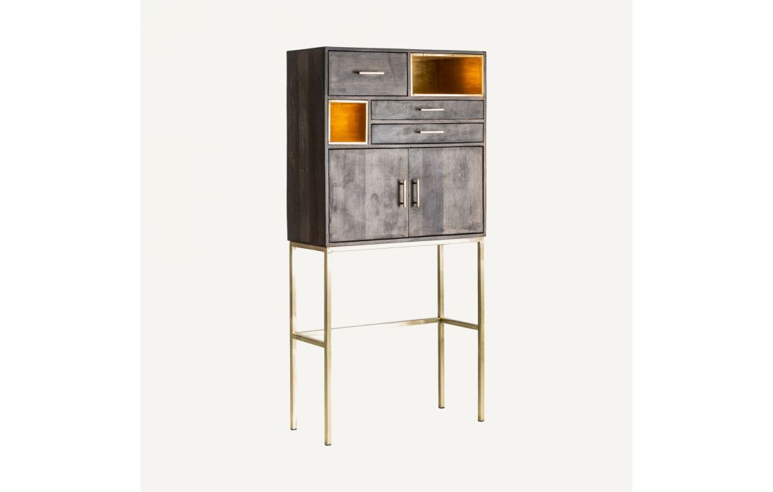 Móvel Alto Vex na cor natural , com estilo moderno fabricado em madeira de mango , com pés em metal dourado .