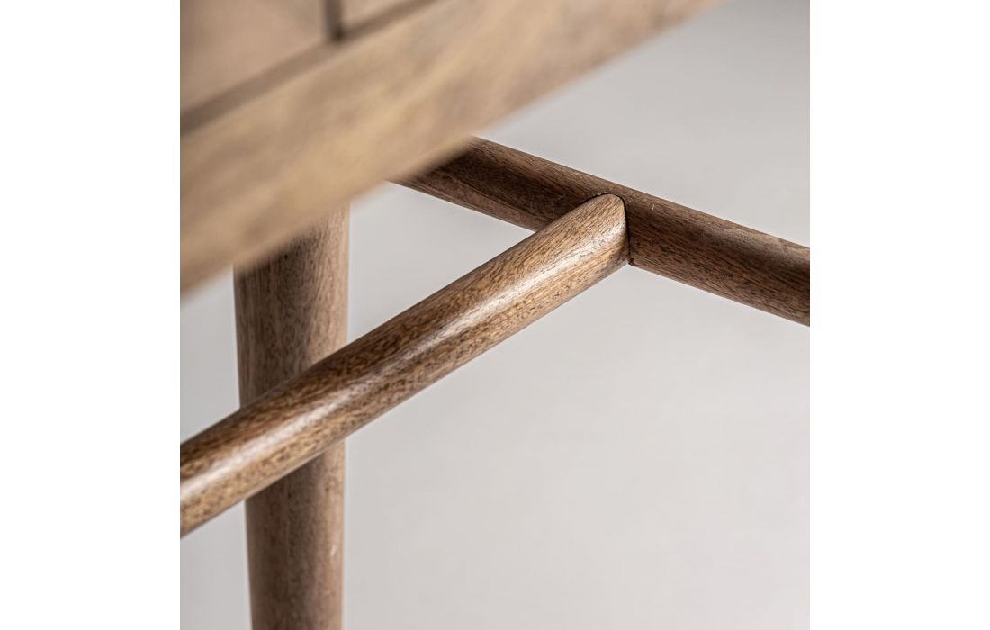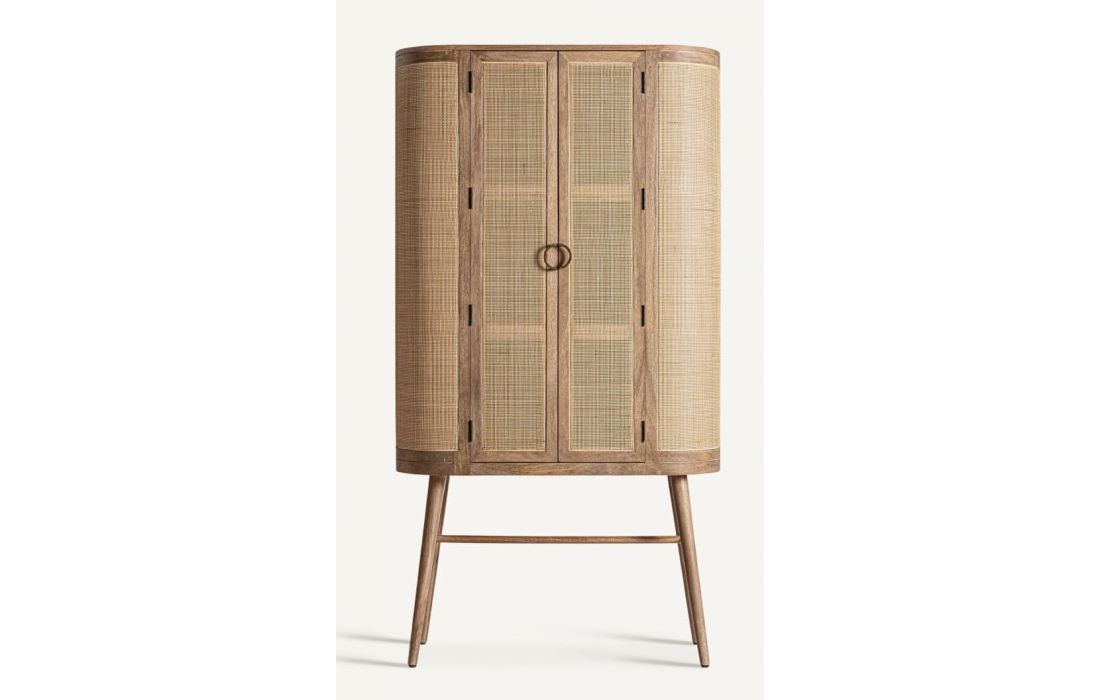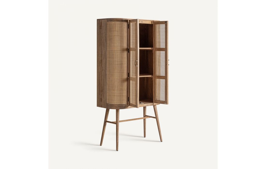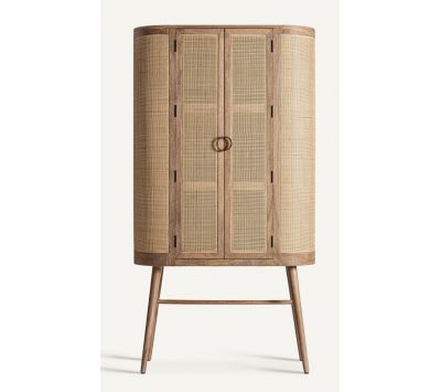 Armário em madeira de mango combinado com vime na cor castanha.