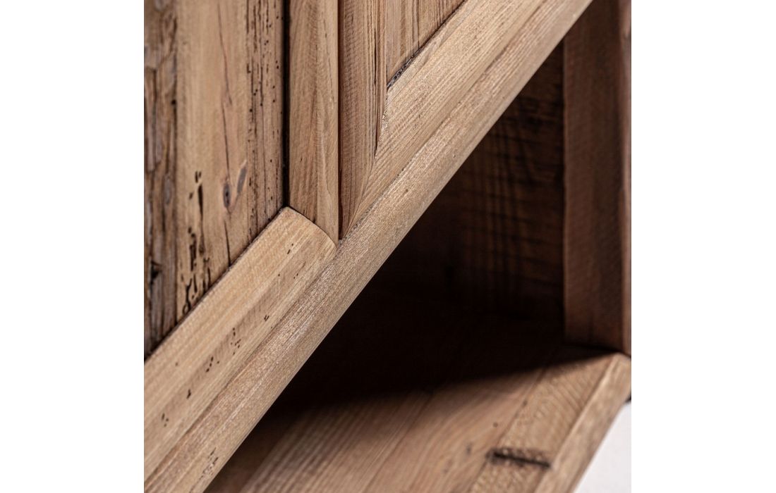 Móvel Alto em madeira de pinho reciclada na cor castanha com acabamento envelhecido