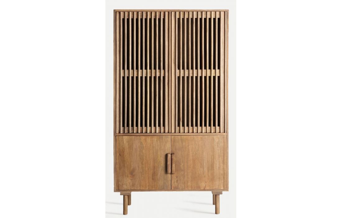 O MÓVEL ALTO TREVOUX feito de madeira de mango é uma excelente opção para quem procura um estilo nórdico com uma solução de armazenamento funcional