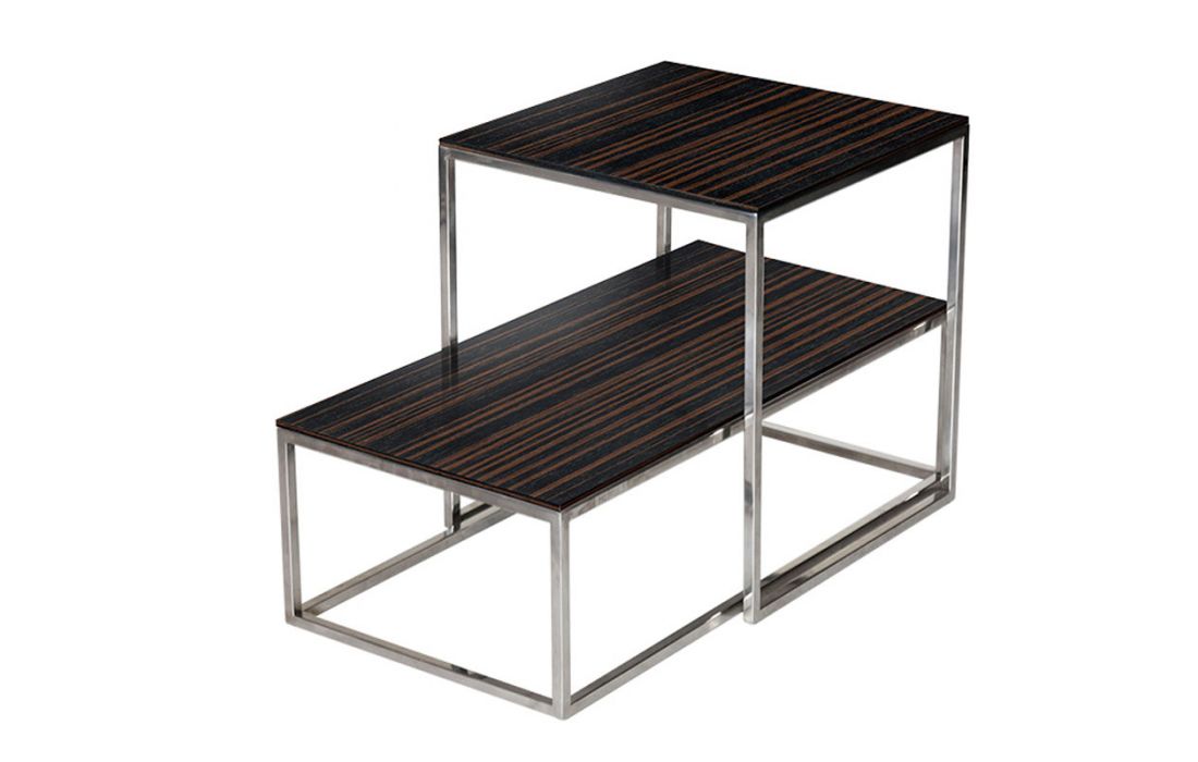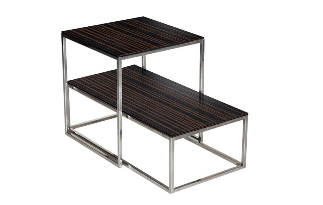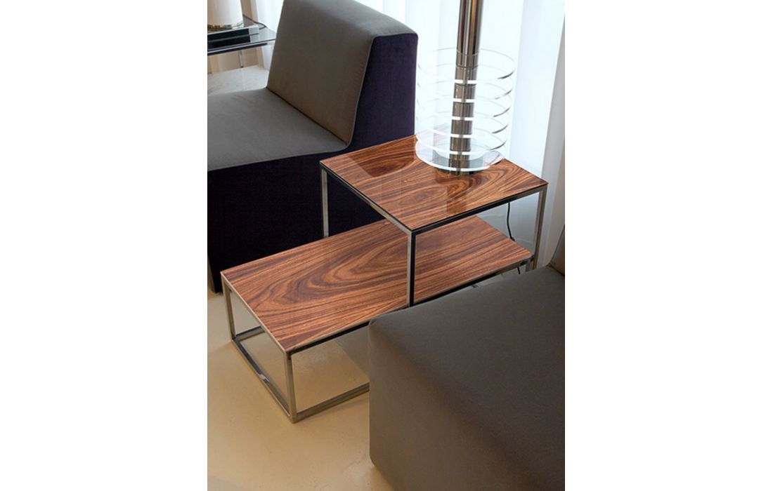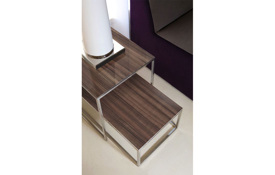 Mesa de apoio em folha de madeira / MDF com vidro e com pés em aço