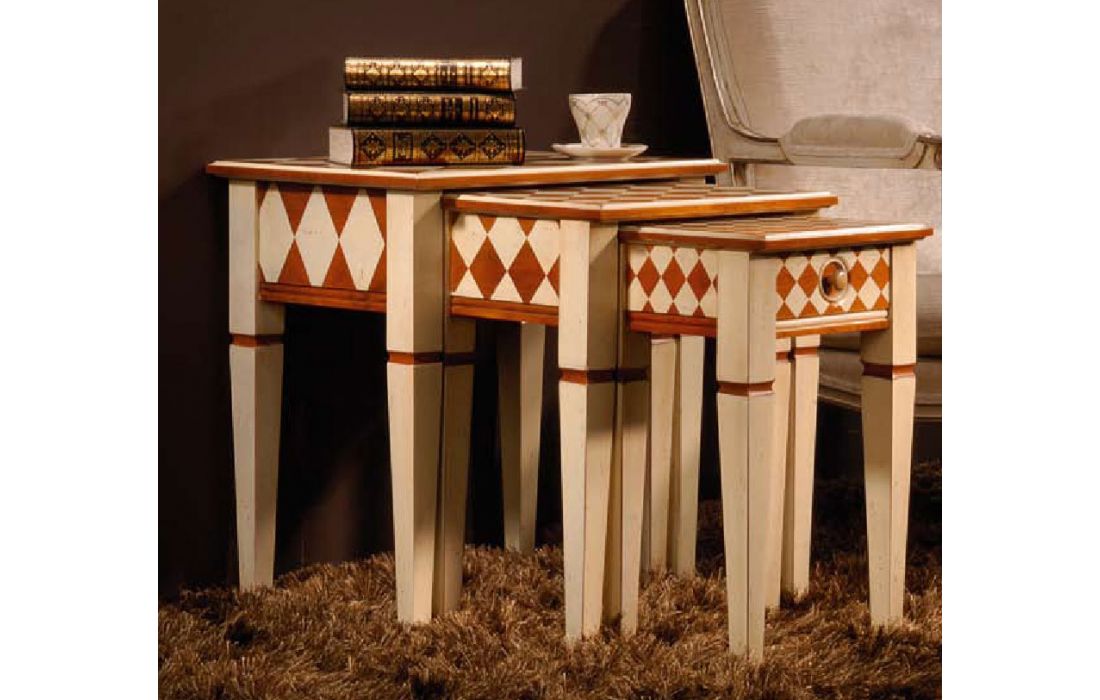 Conjunto de 3 mesas de apoio, design provençal com possibilidade de vários acabamentos.