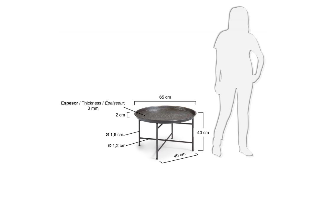 Especificações do Produto Metal Mesa de apoio c/ diâmetro de Ø65 Não fazemos qualquer alteração ao produto Este produto necessita de montagem Manutenção e Limpeza Limpar com um pano seco Para tirar manchas deve usar um pano húmido e de seguida passar um pano seco Legenda de medidas (C) Comprimento (P) Profundidade(A) Altura