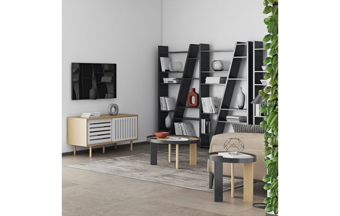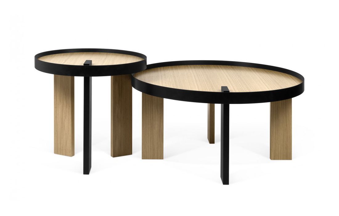 Mesa de apoio com contraste entre a perna preta e a estrutura metálica da mesma cor, com o carvalho folheado da restante peça, acentua ainda mais o seu visual, para tornar seu ambiente ainda mais bonito.