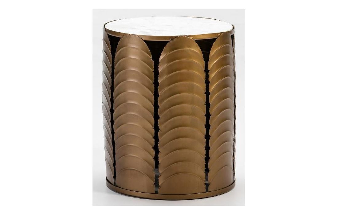 Mesa de apoio com estrutura em metal dourado e tampo de marmore branco.Destinatário :
