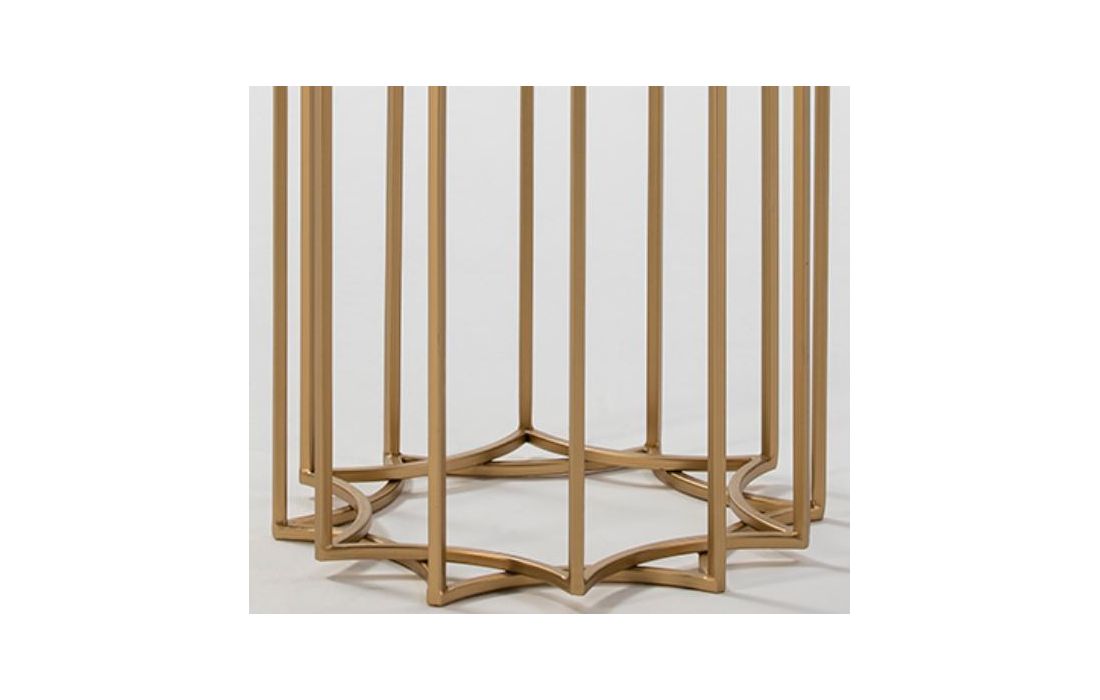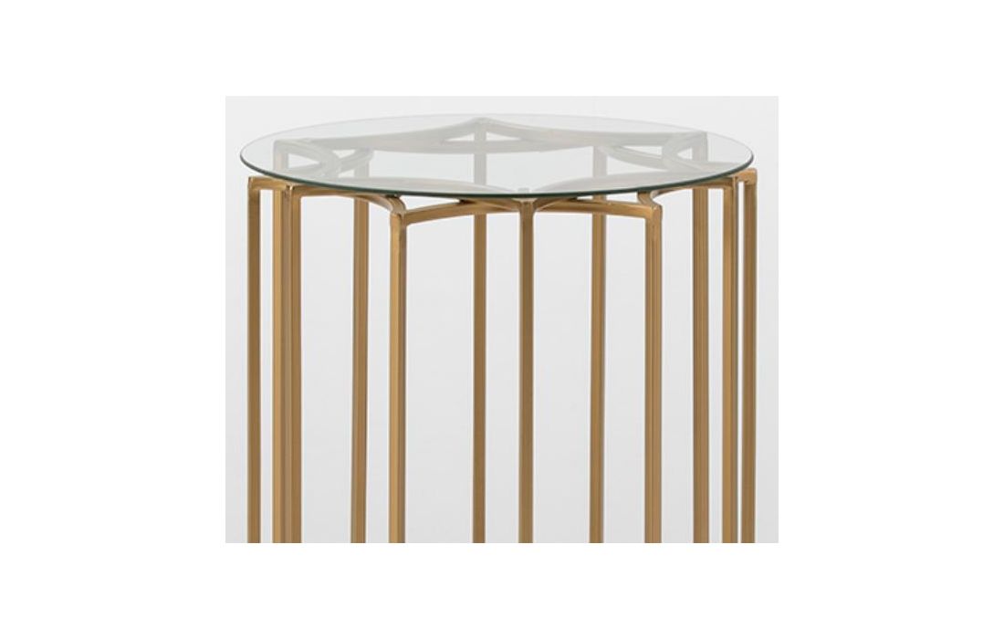 Mesa de apoio redonda com estrutura em metal dourado e tampo de vidro.Destinatário :