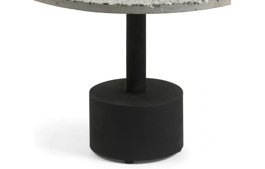 Mesa de apoio com estrutura em metal e tampo de marmore.