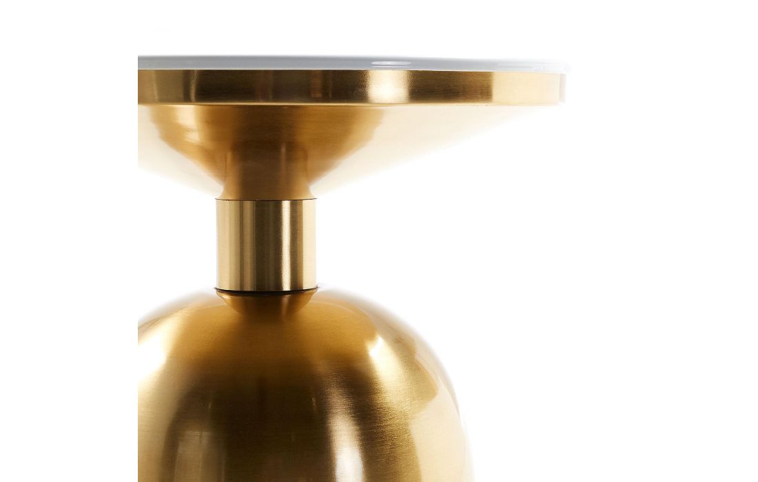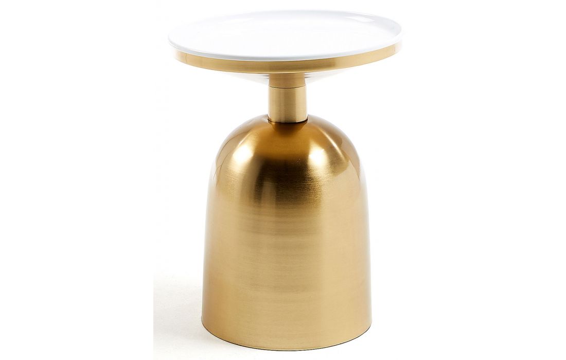 Mesa de apoio com tampo em metal esmaltado e estrututa em latão dourado.