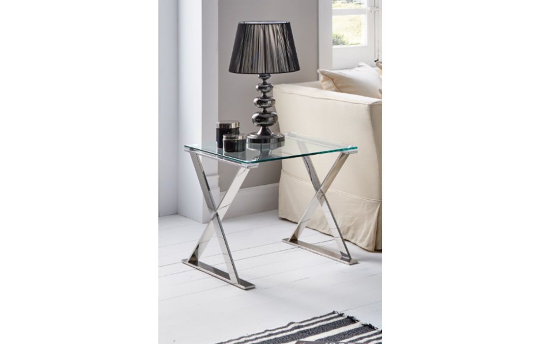 Mesa de apoio em vidro temperado 10mm com estrutura de aço inoxidável.Destinatário :
