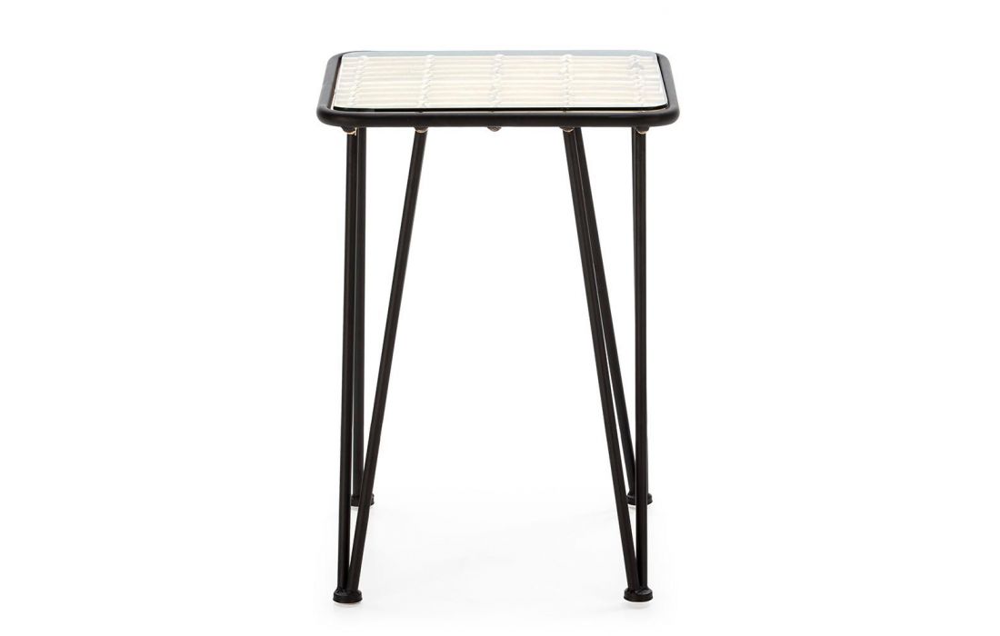 Prazo de entrega: 30 a 40 dias Inspirada nas formas naturais dos ramos das árvores, a mesa de apoio Avilo é baseada numa estrutura angular. O tampo em vidro evidencia os elementos diagonais desta peça multifuncional.