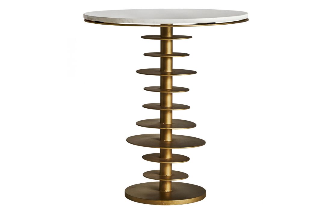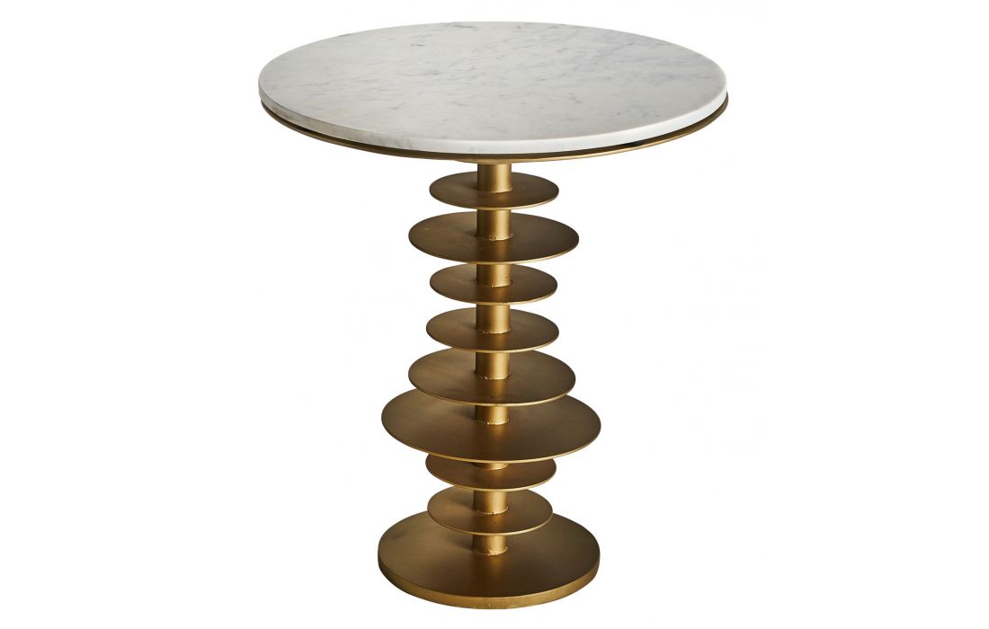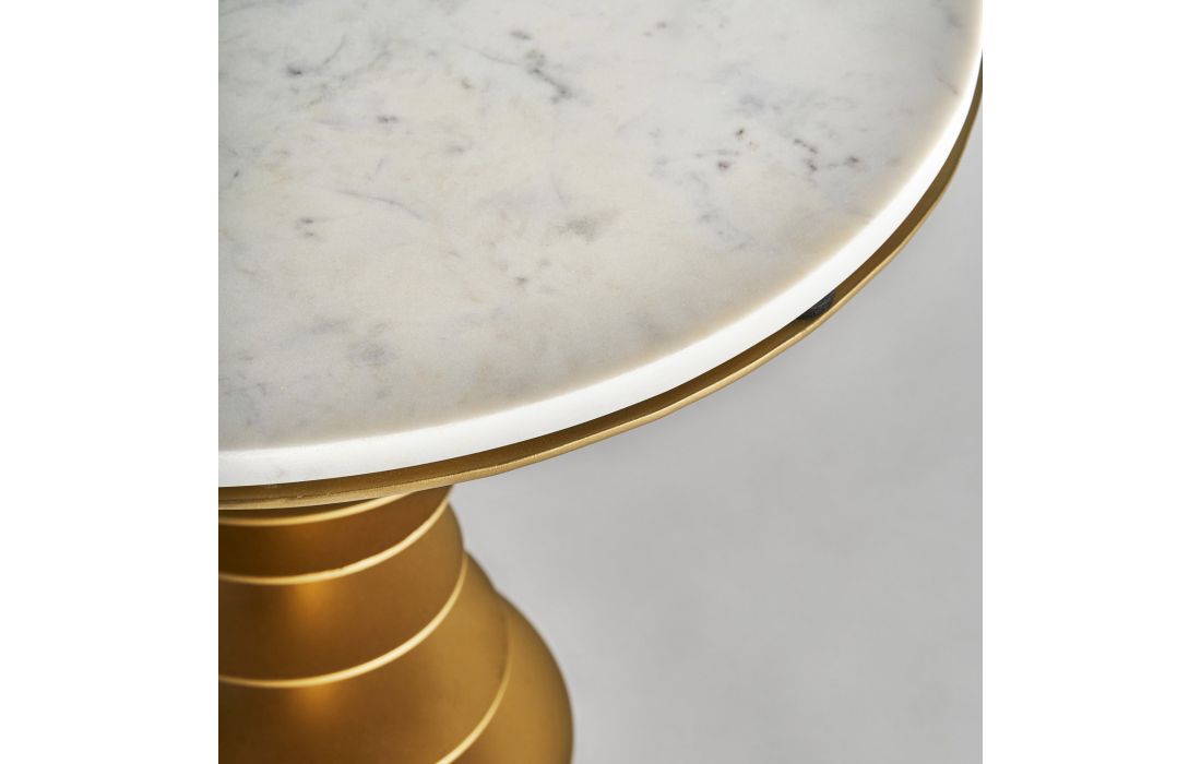 Mesa de apoio com estrutura em ferro dourado e tampo de marmore cor branca