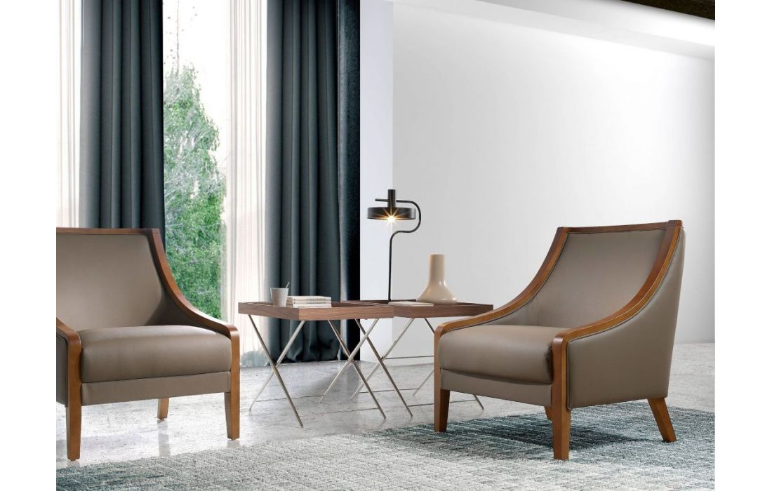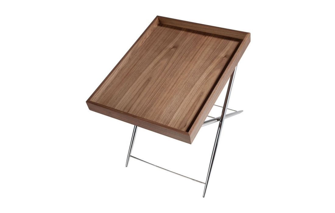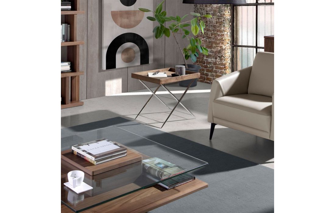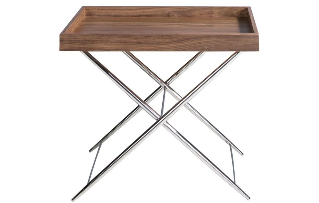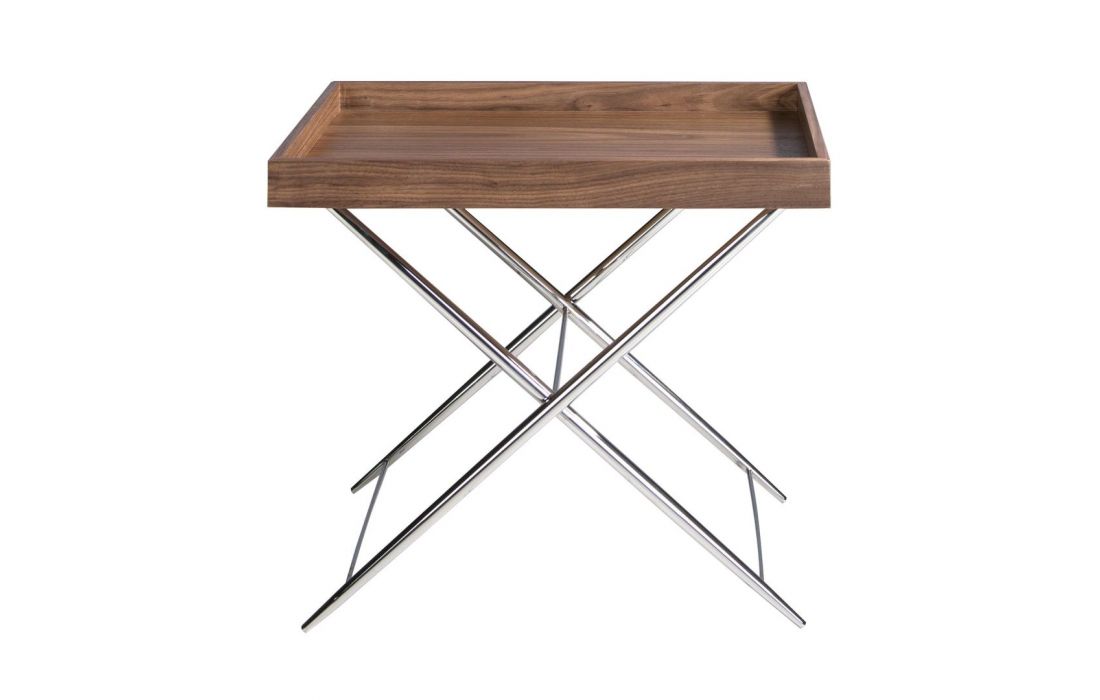 Mesa de apoio moderna com tampo em MDF de nogueira e pernas em aço inoxidávelDestinatário :