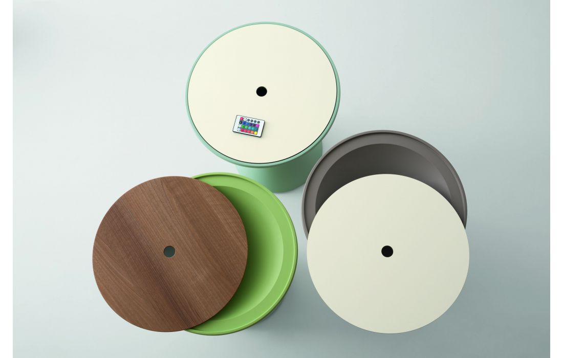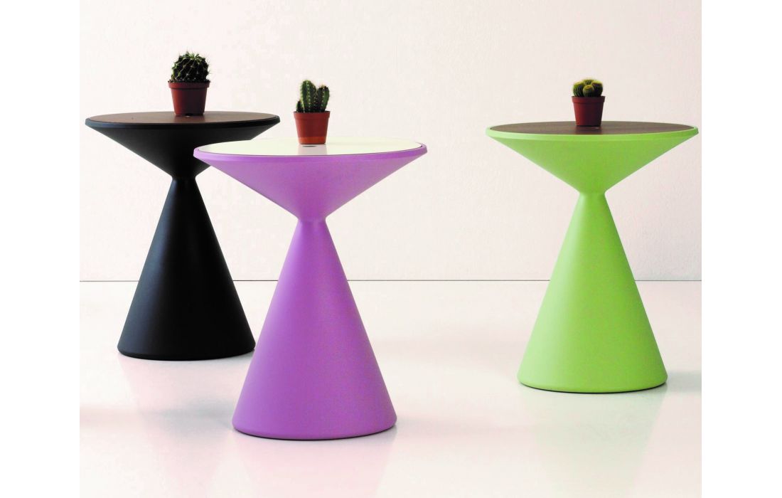 Mesa de apoio de polietileno com compartimento interior e tampo removível em pvc bicolor. Também pode ser usado para ambientes externos.