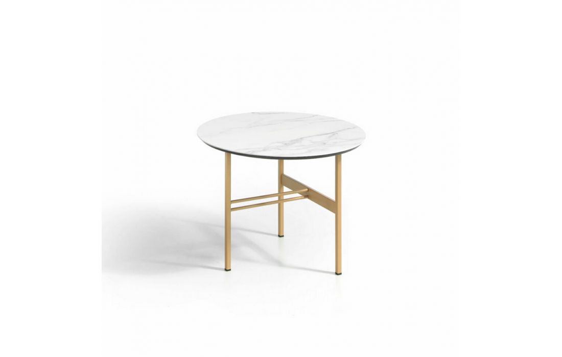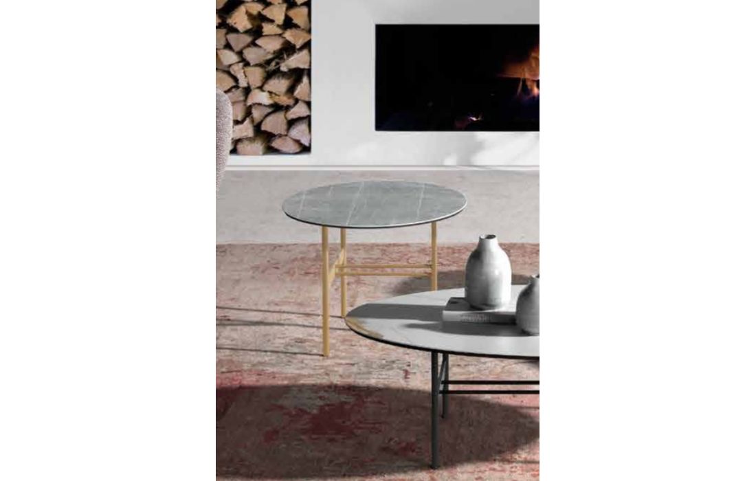 Mesa de apoio com tampo em cerâmica com pés em metal