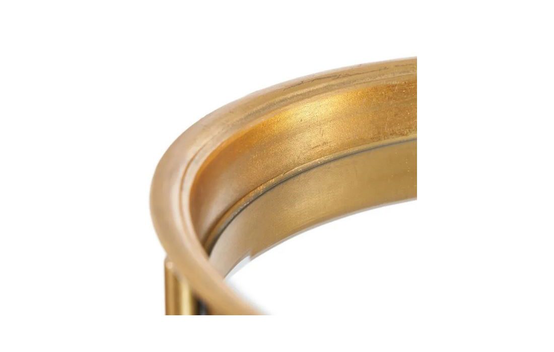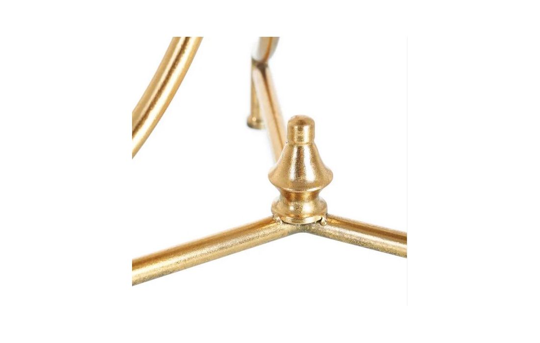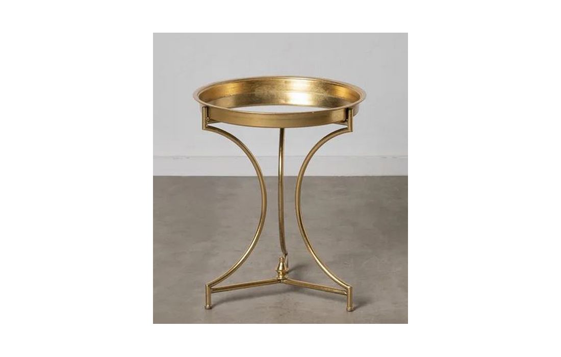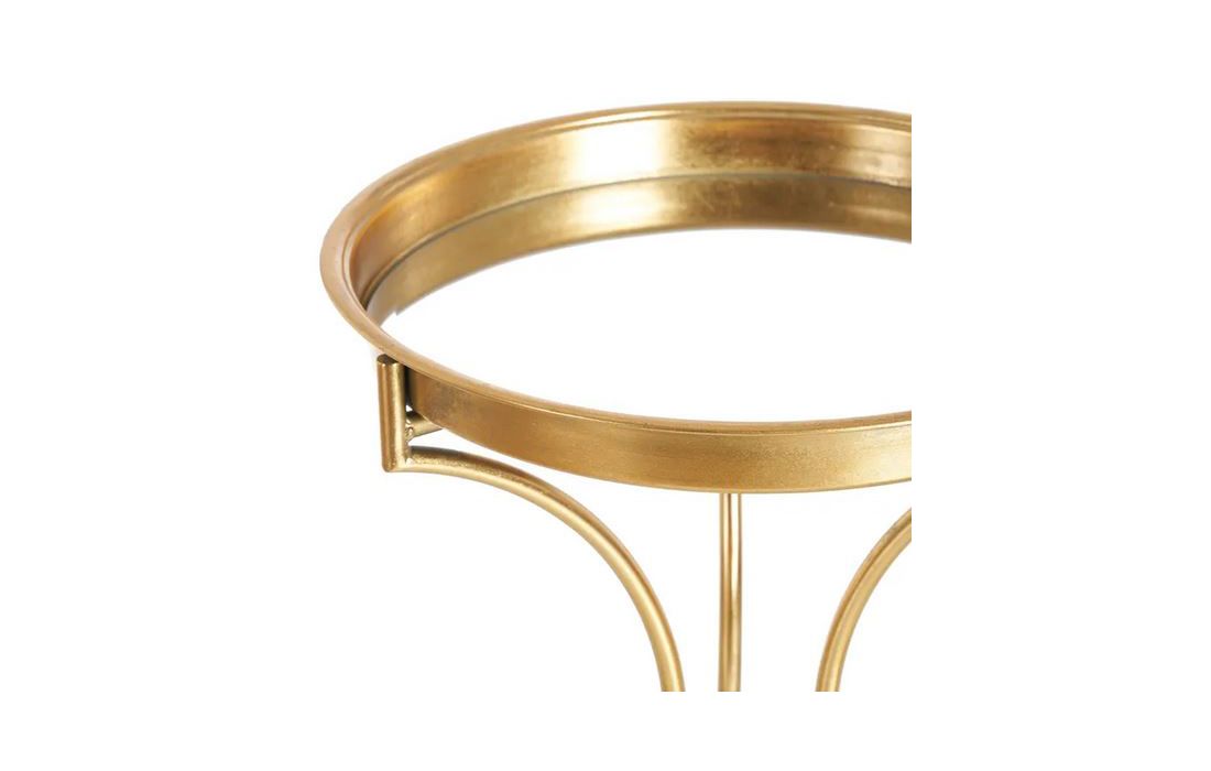 Mesa de apoio com estrutura em metal dourado e vidro no tampo