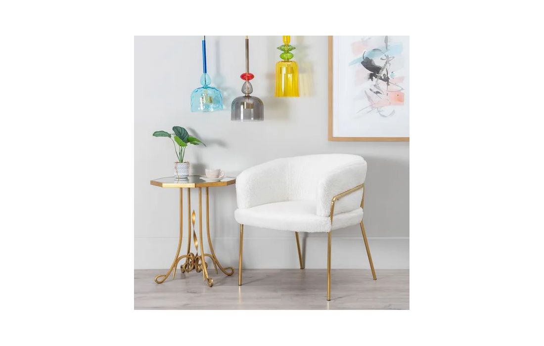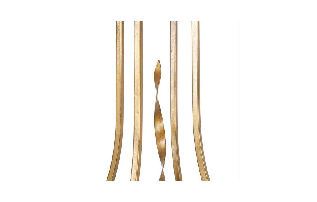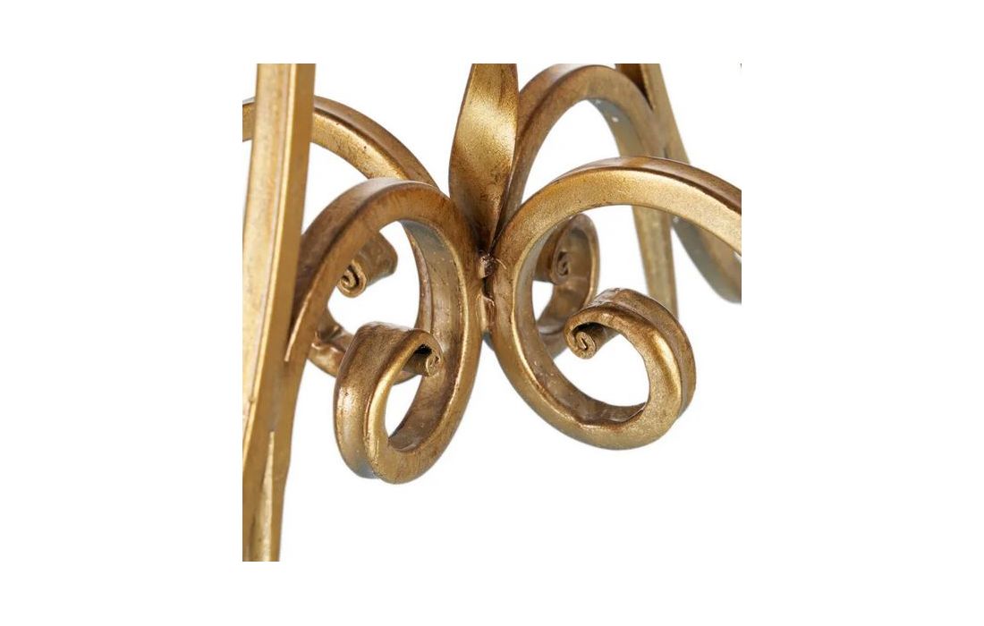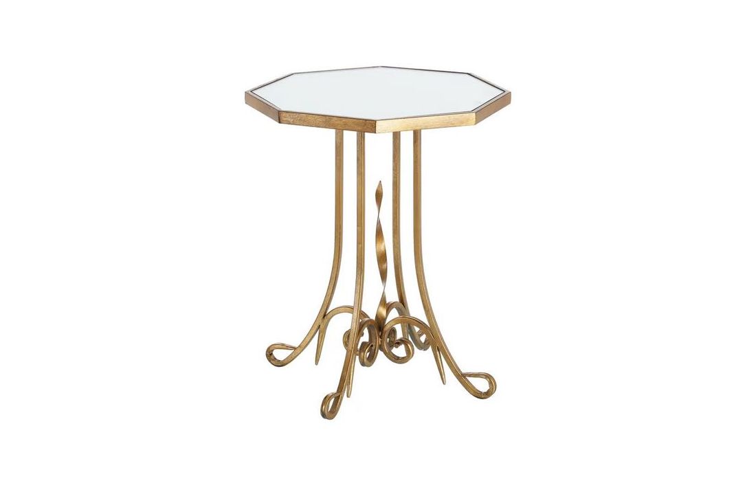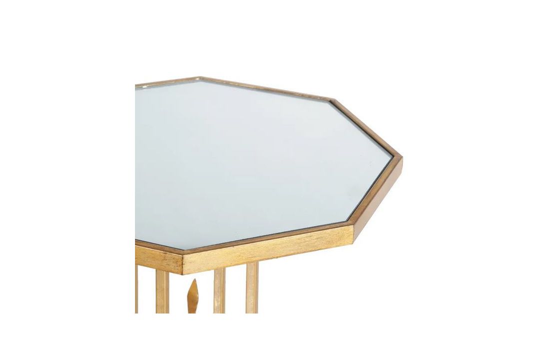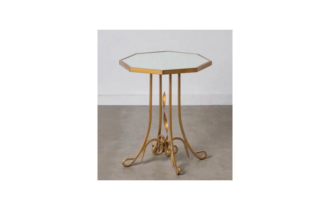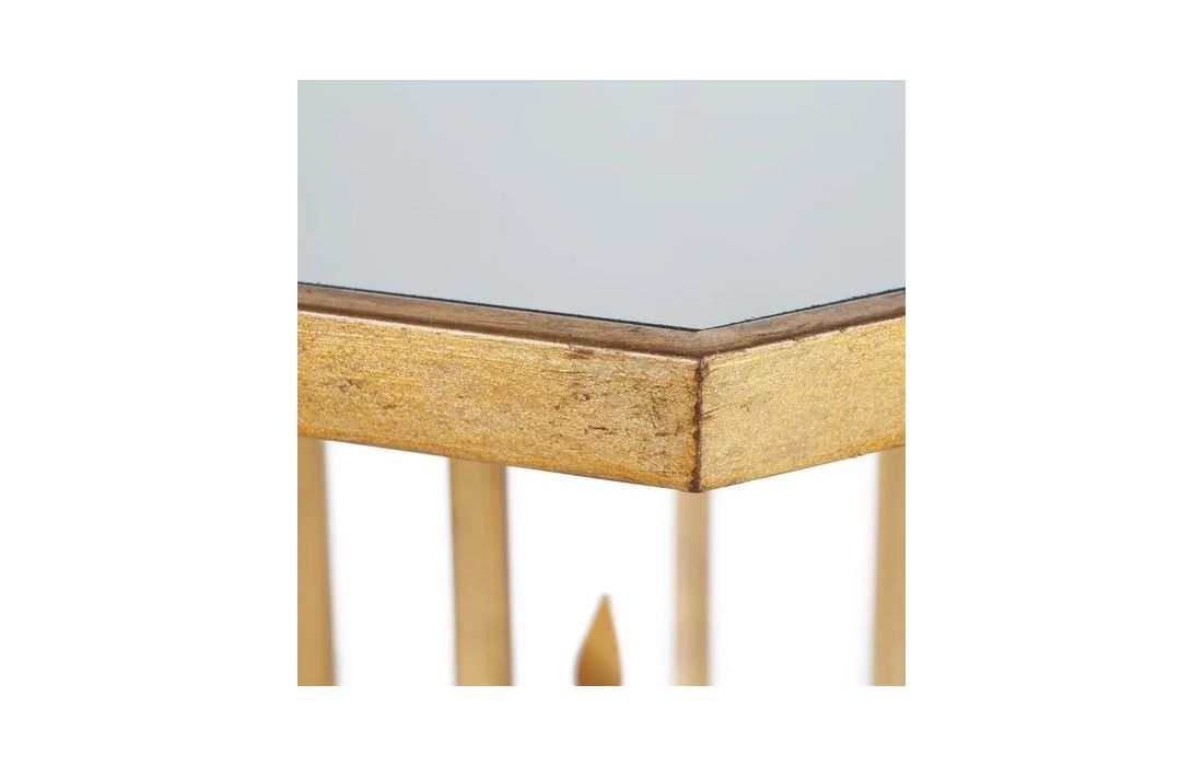 Mesa de apoio com estrutura em metal dourado envelhecido e vidro no tampo