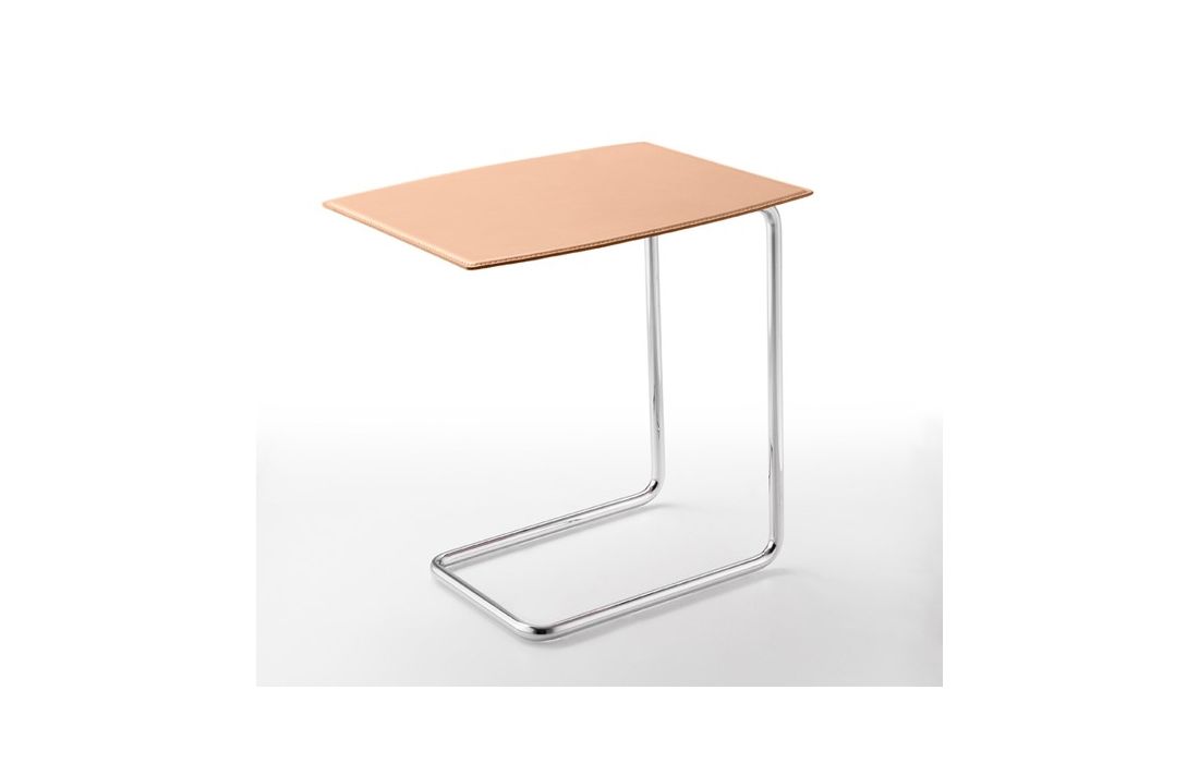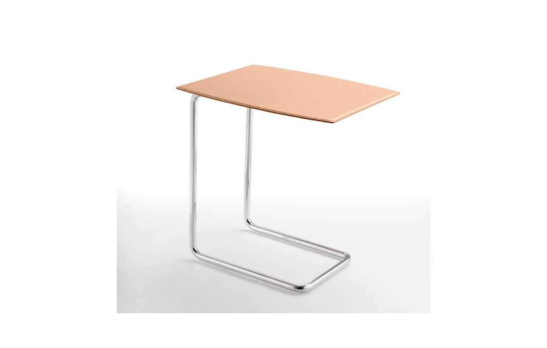 Mesa de apoio com estrutura em metal lacado mate ou brilhante. Tampo estofado em couro.