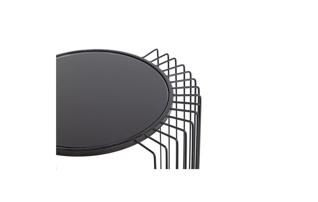 mesa de apoio com tampo em vidro preto e pés em ferro pretoDestinatário :