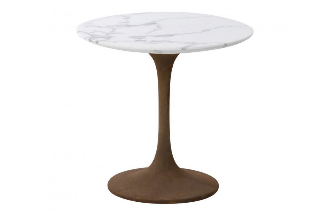 Mesa de apoio com tampo em mármore artificial branco e o pé mdf e fibras de vidro castanhoDestinatário :