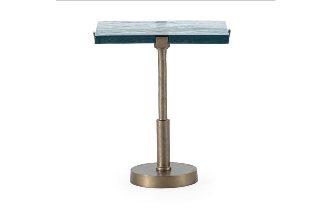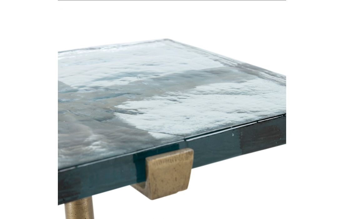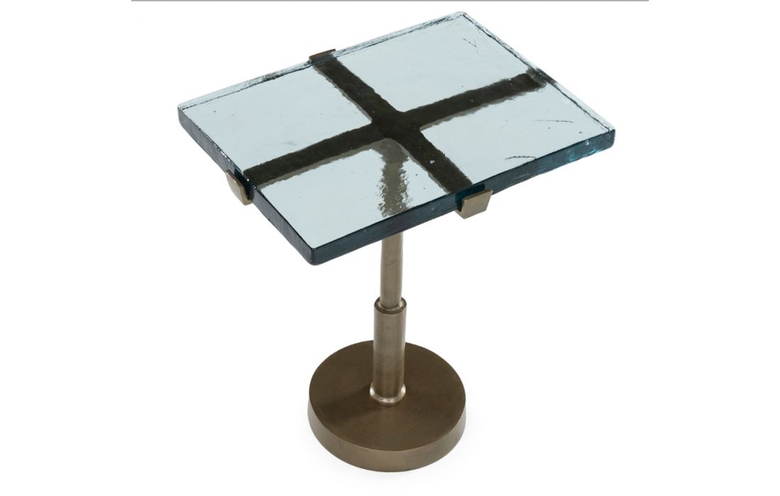 Mesa retangular de apoio em metal com tampo em vidro rústicoDestinatário :