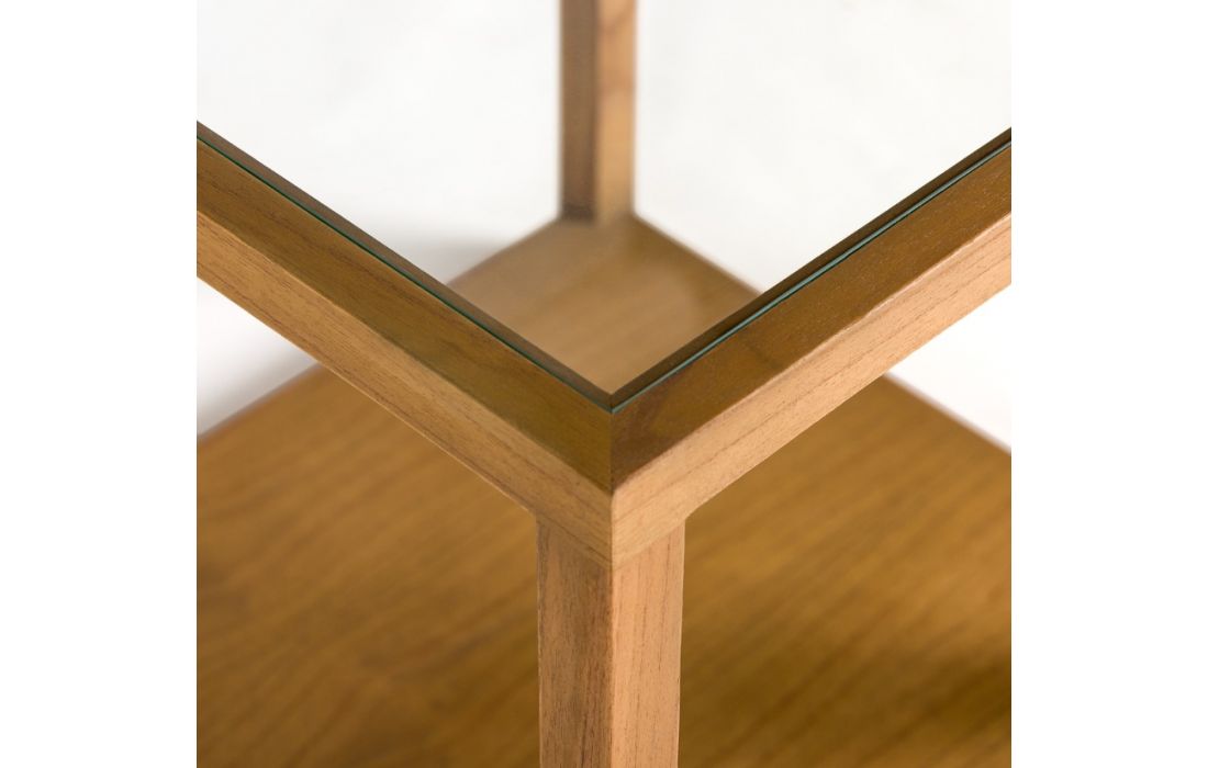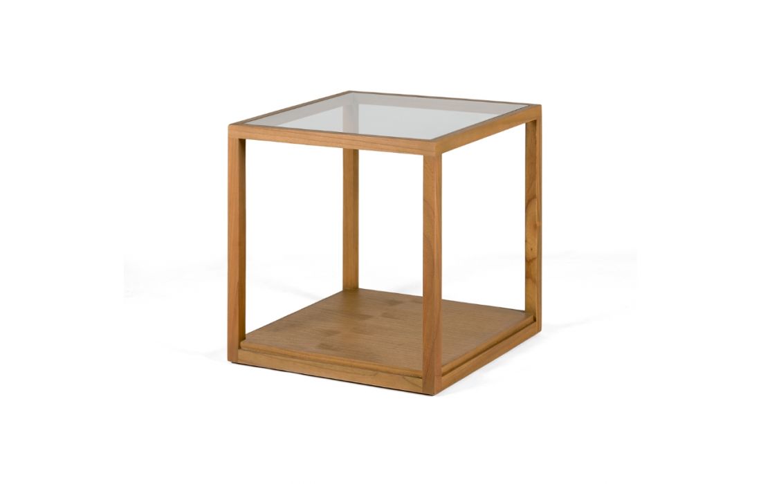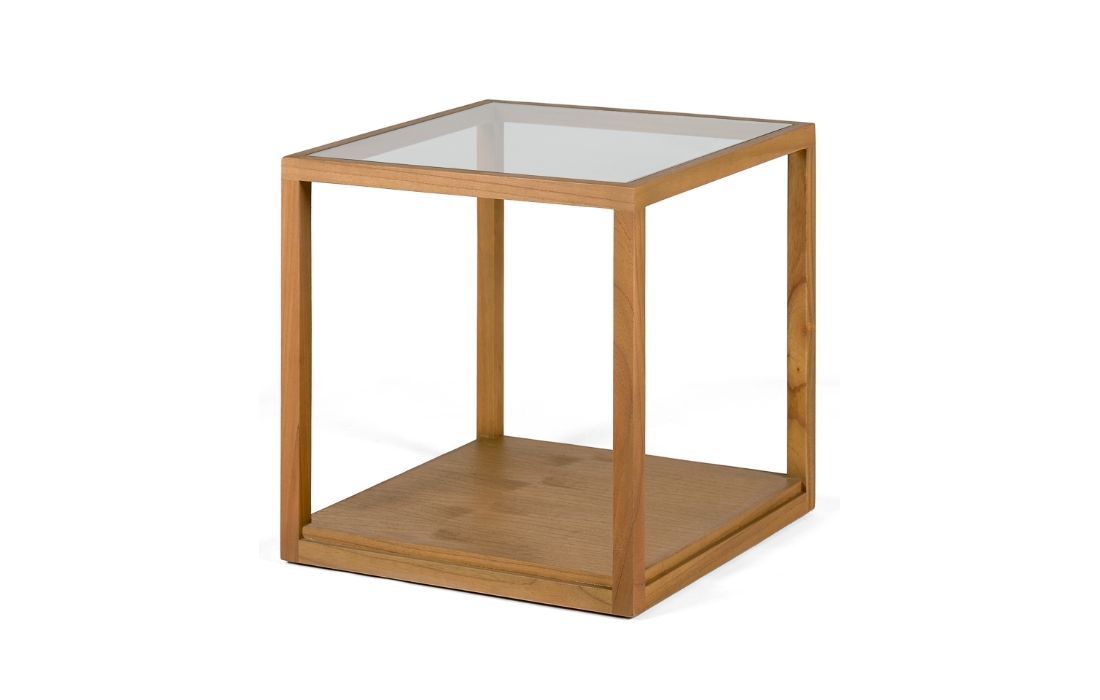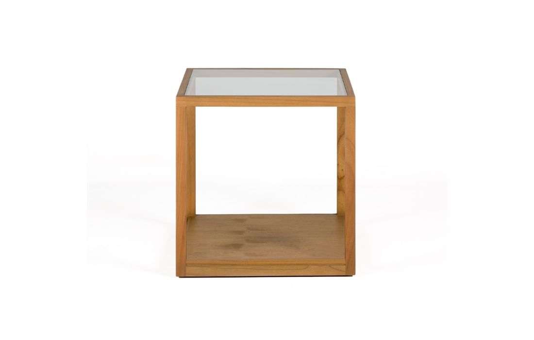 Mesa de apoio quadrada em madeira de cedro com tampo em vidro.Destinatário :