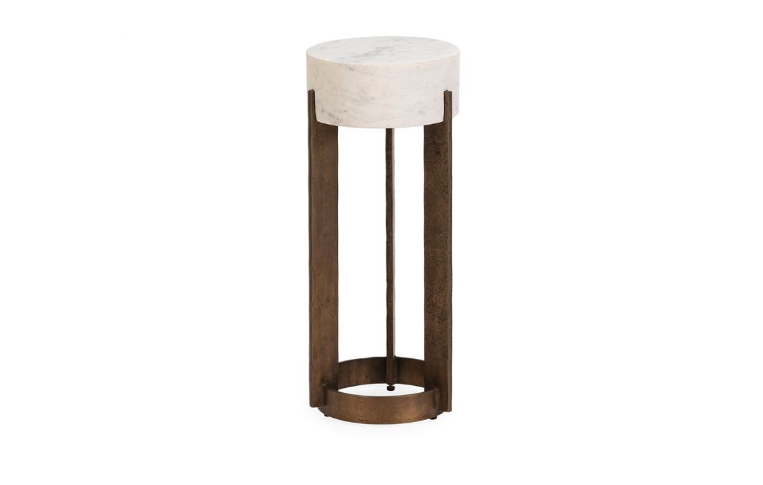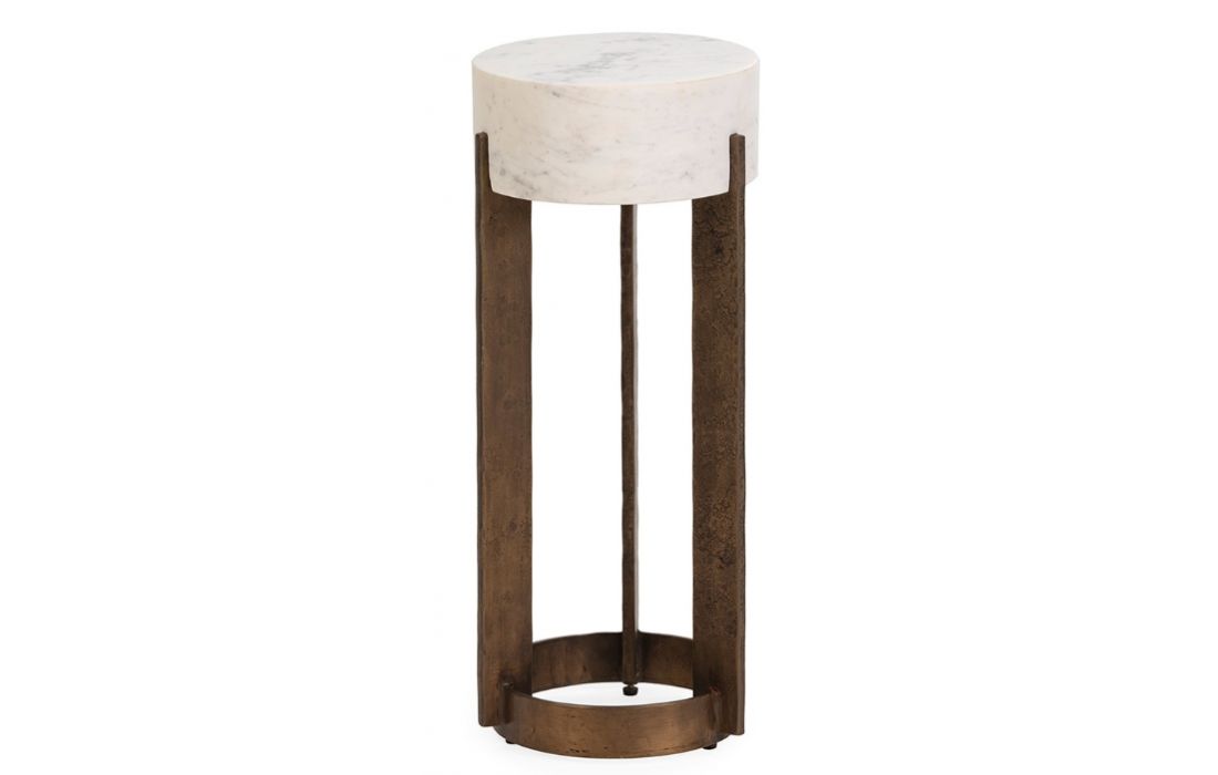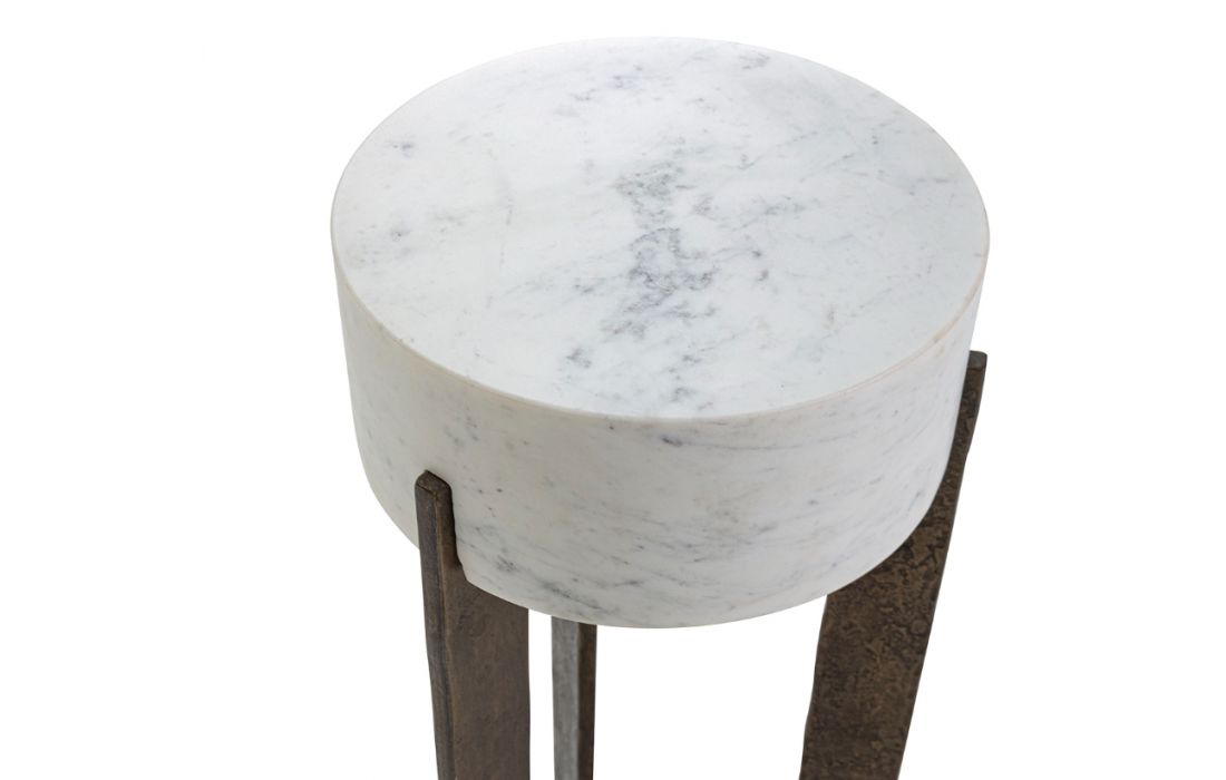 Mesa de apoio redonda com tampo em Mármore e estrutura em metal.