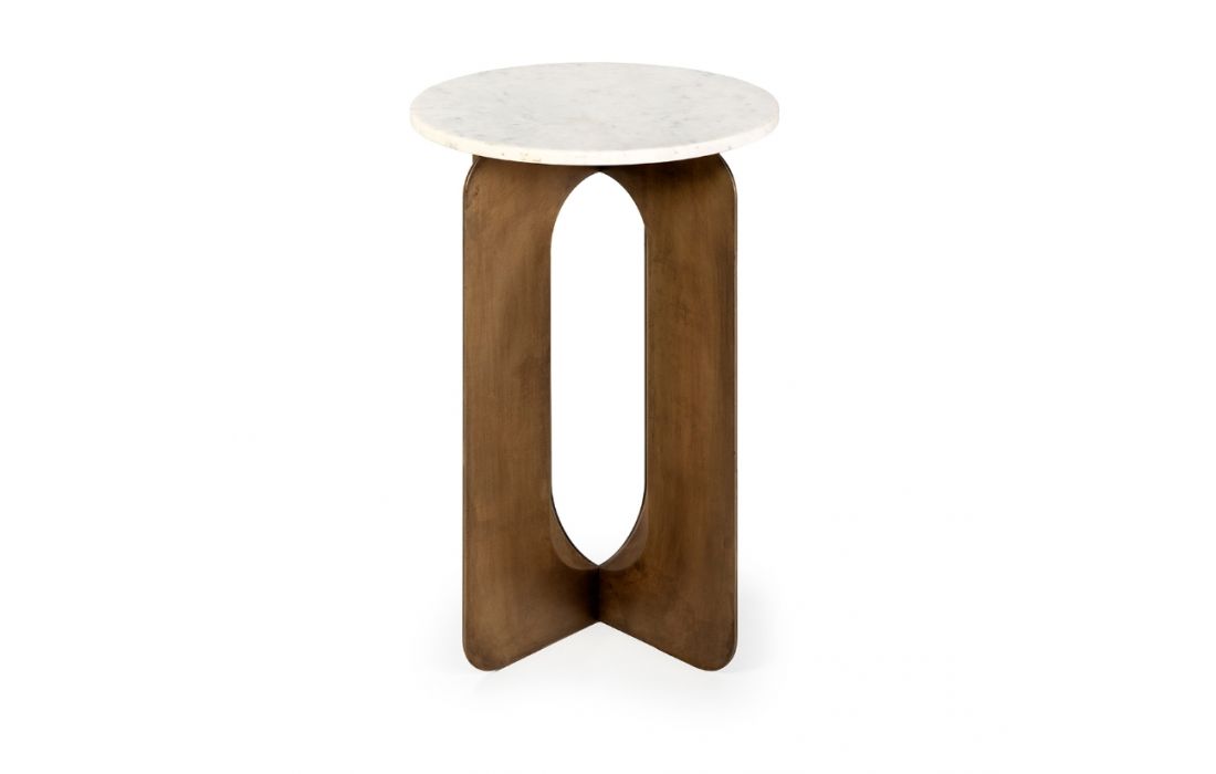 Mesa de apoio com estrutura em metal com tampo em mármore.Destinatário :