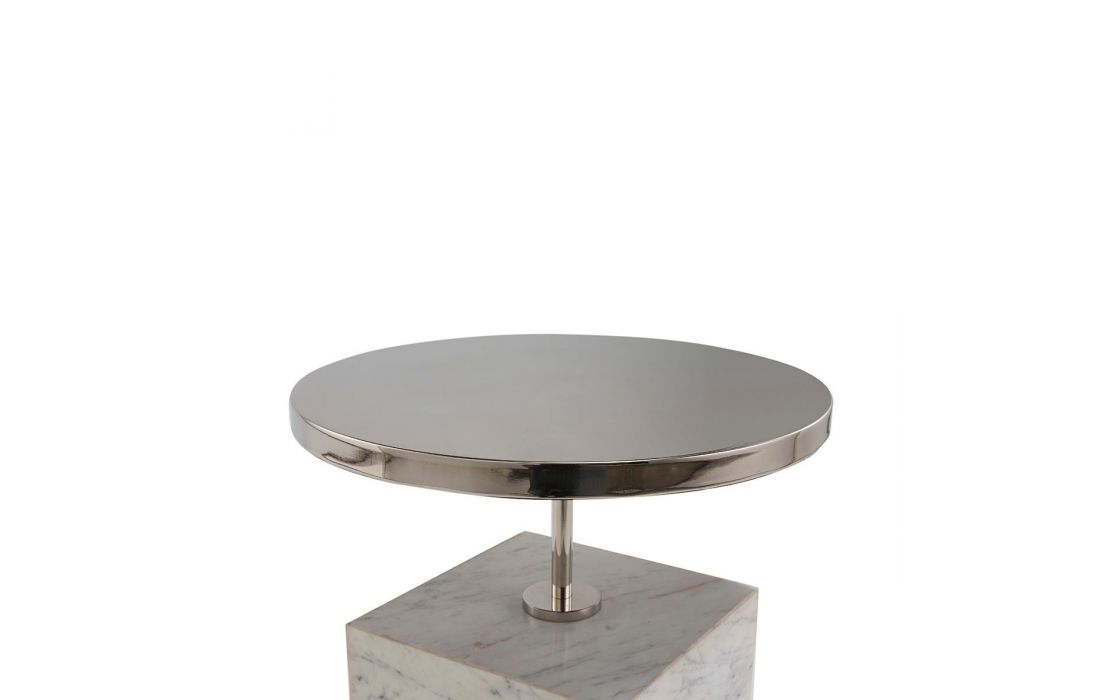 Mesa de apoio com base de marmore branco e tampo em metalDestinatário :