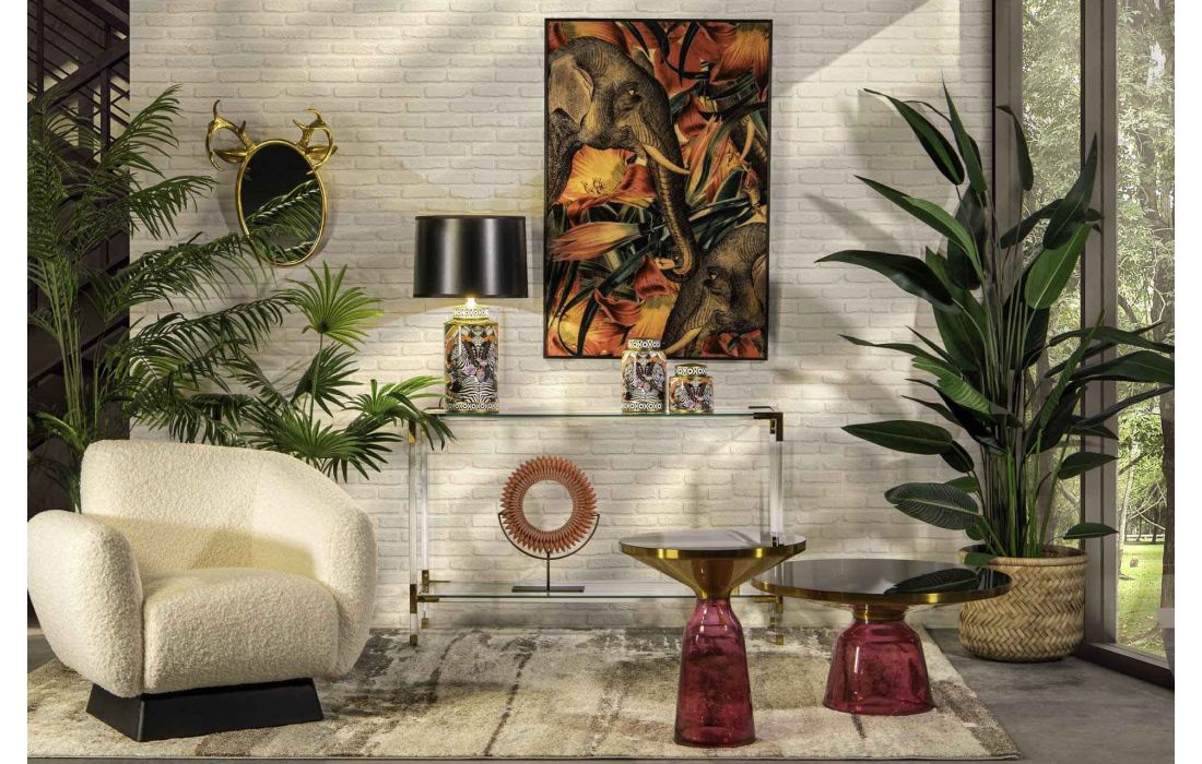 Prazo de entrega: 30 a 40 dias Inspirada nas formas naturais dos ramos das árvores, a mesa de apoio Avilo é baseada numa estrutura angular. O tampo em vidro evidencia os elementos diagonais desta peça multifuncional.