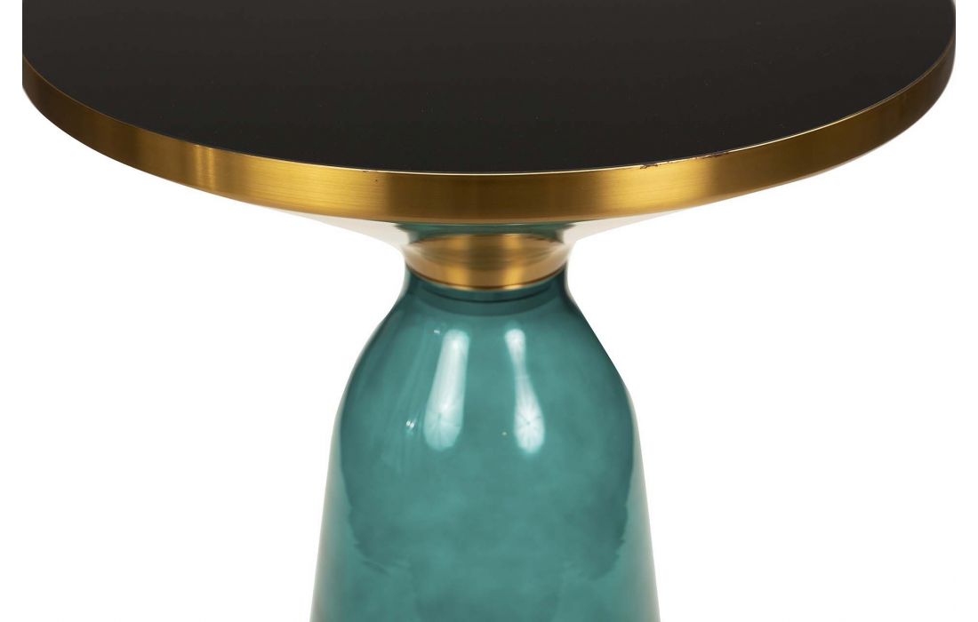 Mesa de apoio redonda feita em aço inoxidável e vidro cor azul/dourado/preto