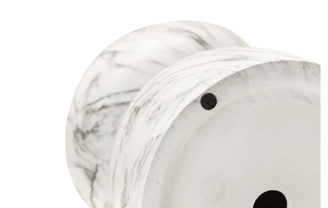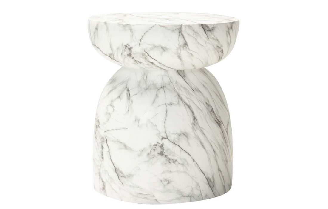 Mesa de apoio redonda feita em fibra de vidro com imitação de marmore